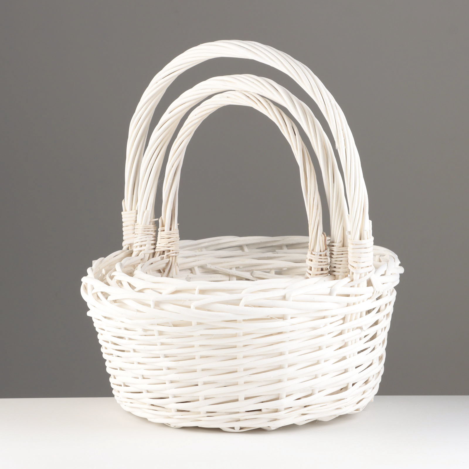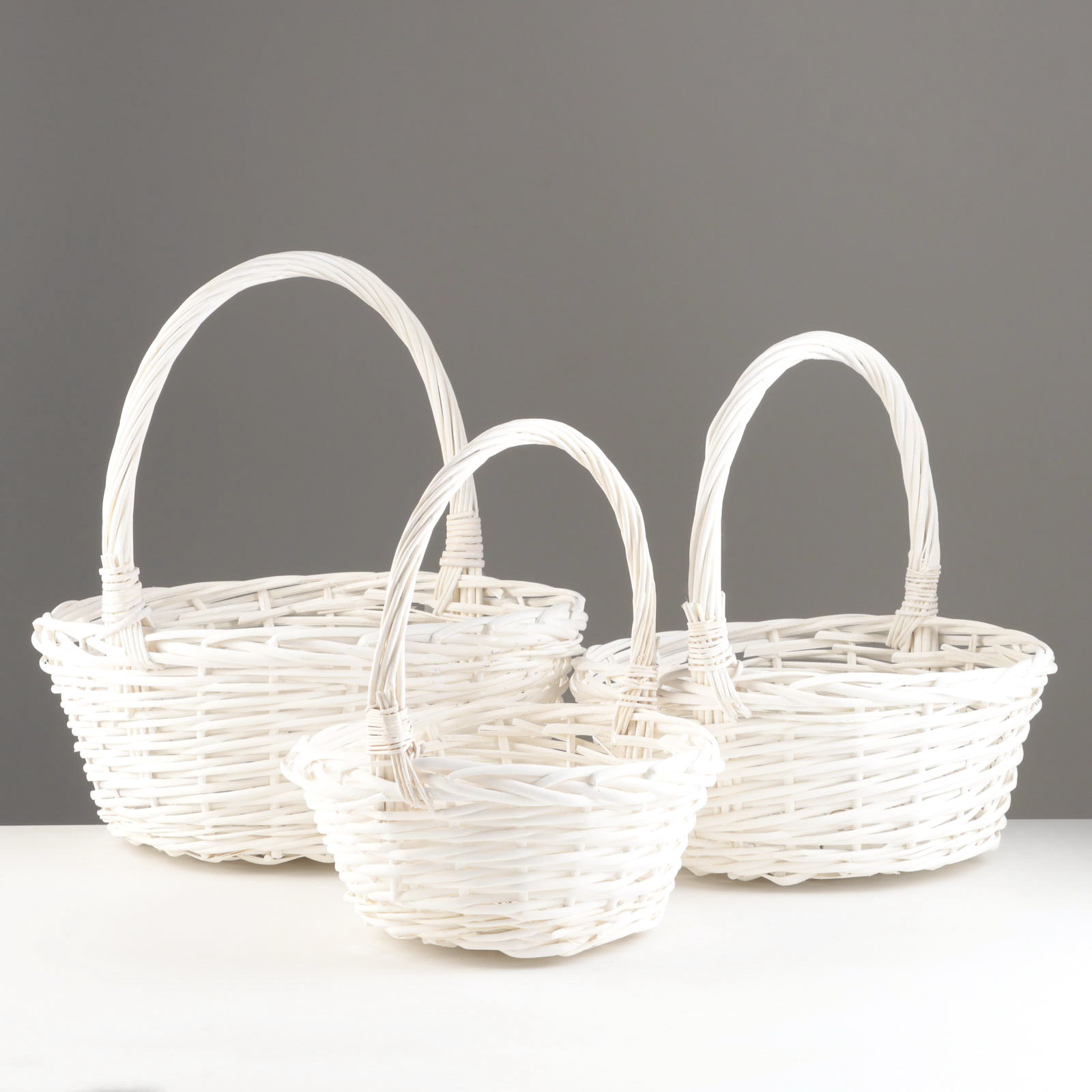 Набор корзин из 3 шт, 38х38х17х 41, 32х32х15х36, 26х26х13х31, белый, ива, Китай