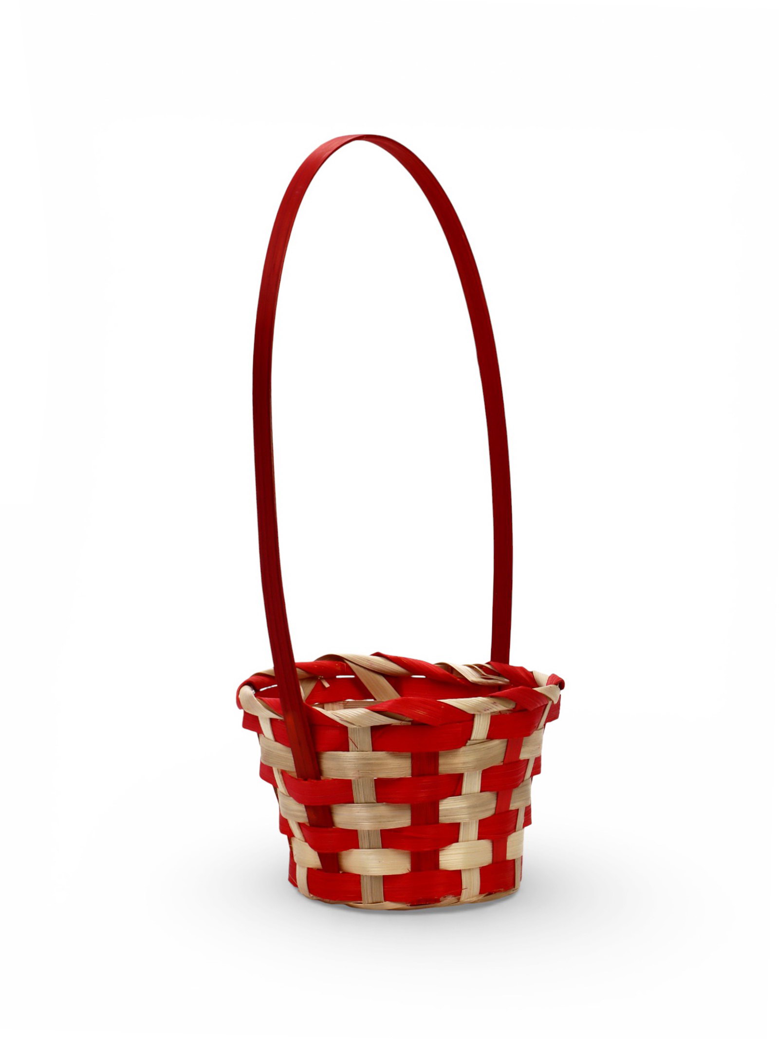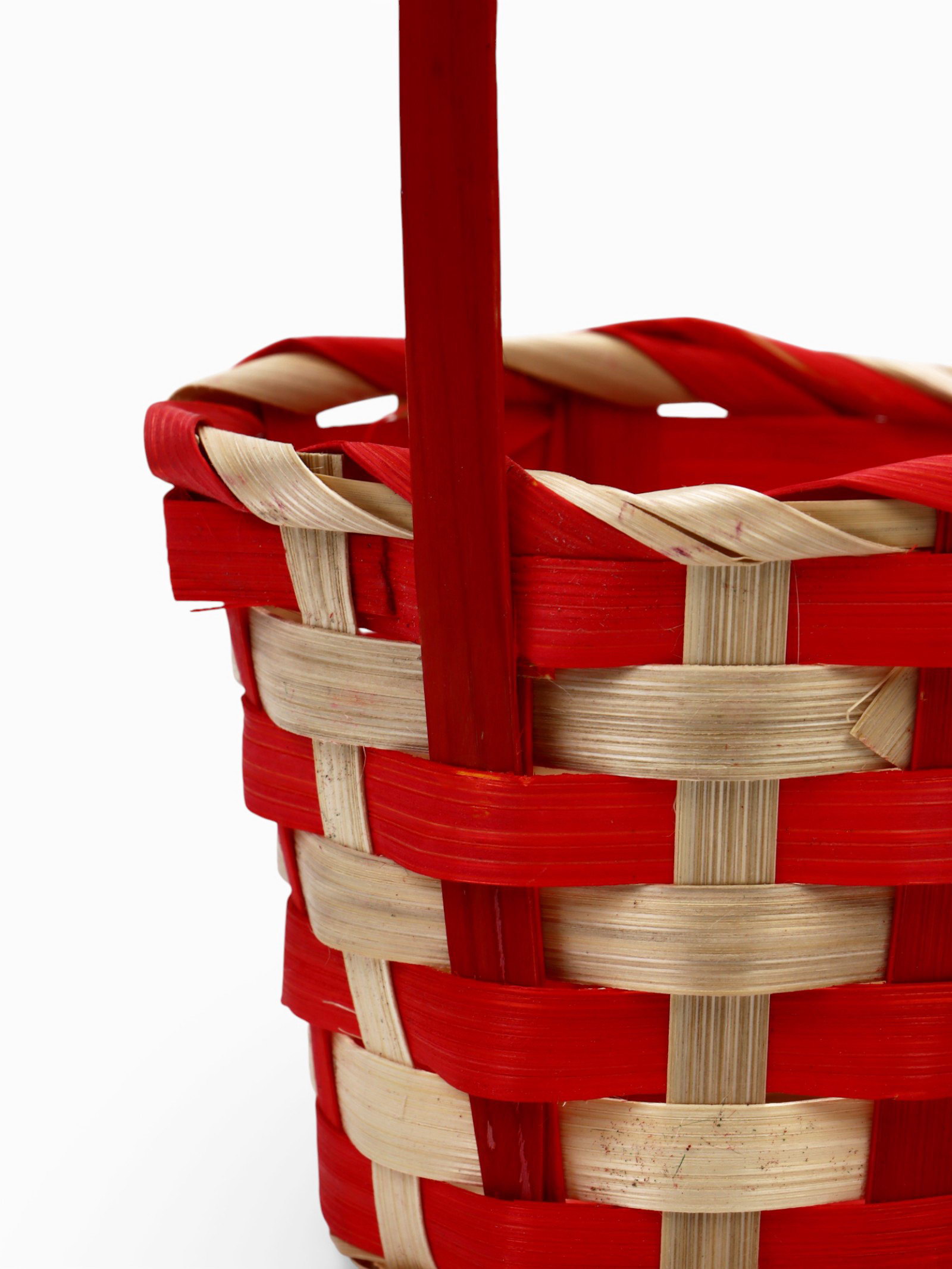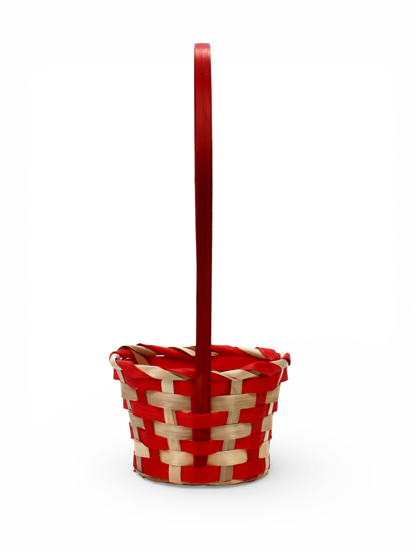 Корзина плетёная для хранения, 13x13x9.5 см, ручка h=21 см, бамбуковая, красно-бежевая, 13x13x30 см., Greengo, Китай