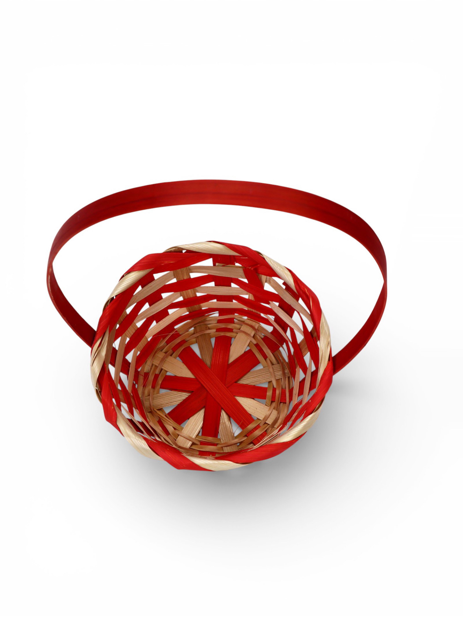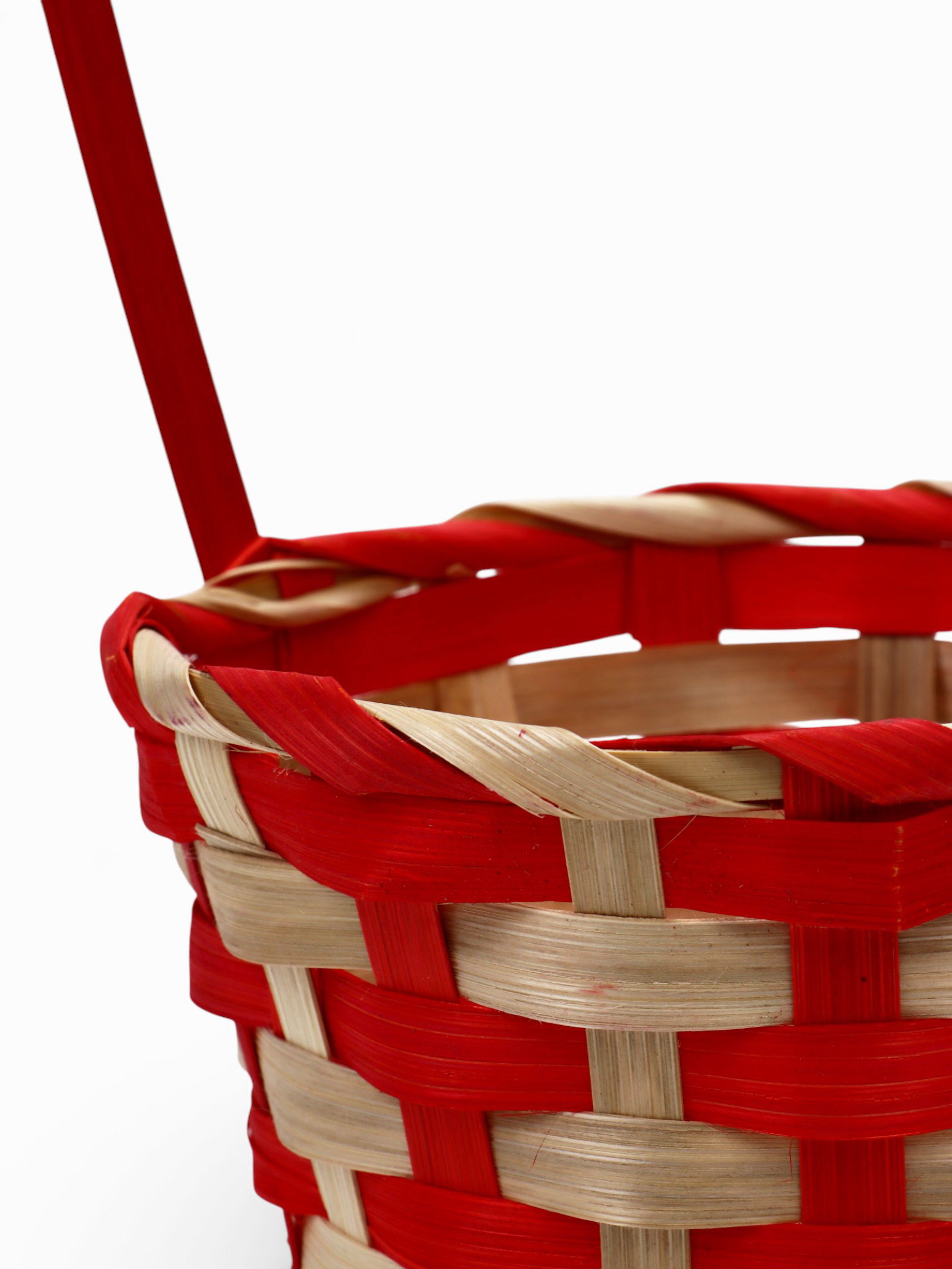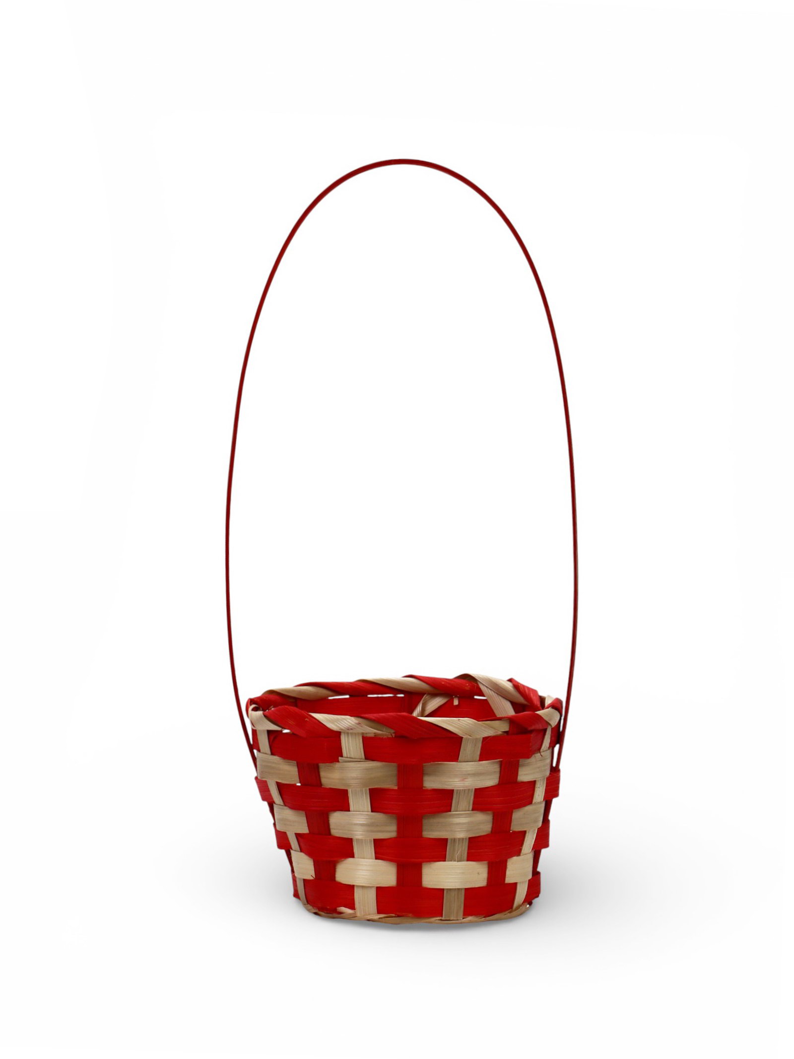 Корзина плетёная для хранения, 13x13x9.5 см, ручка h=21 см, бамбуковая, красно-бежевая, 13x13x30 см., Greengo, Китай