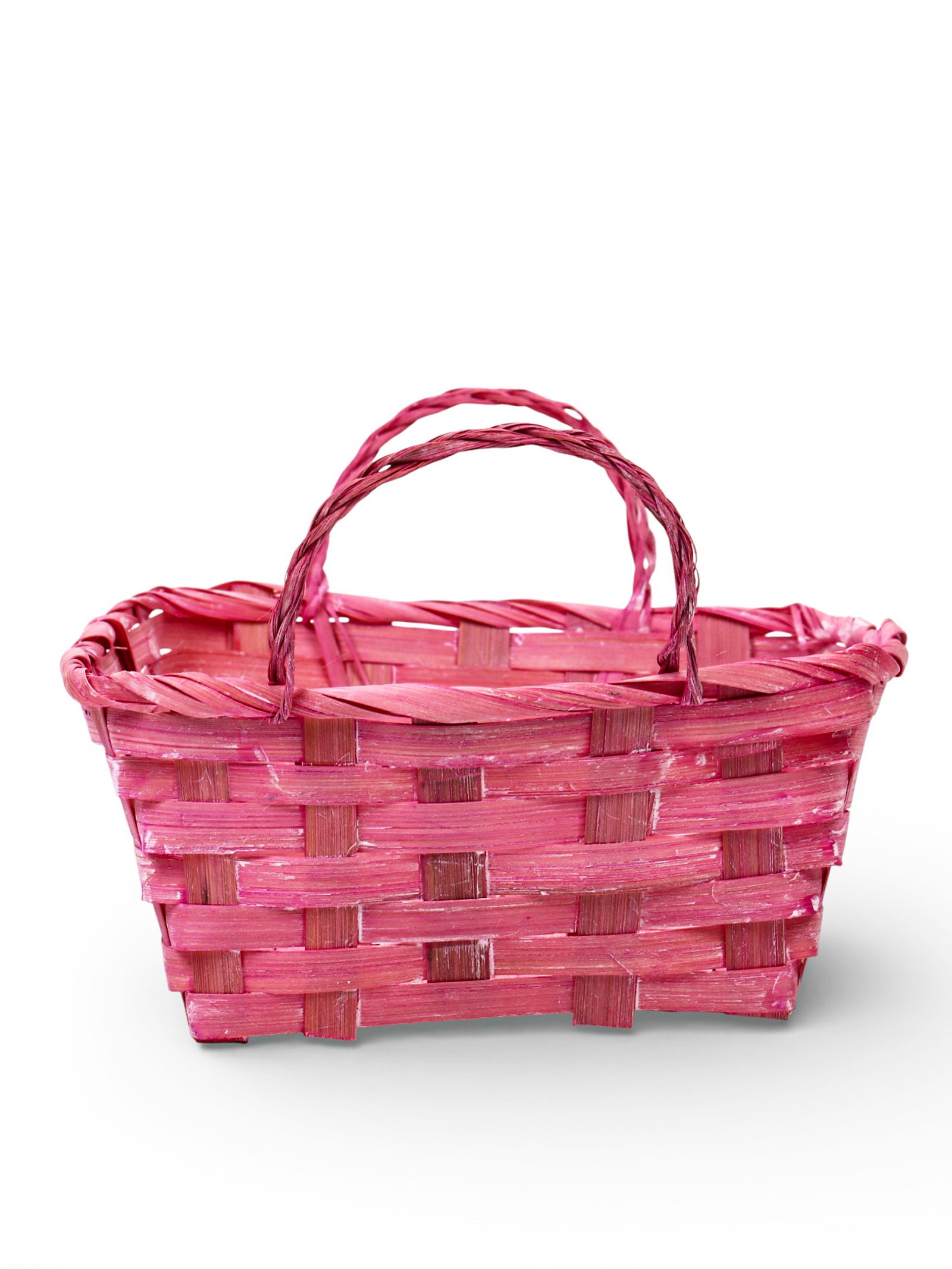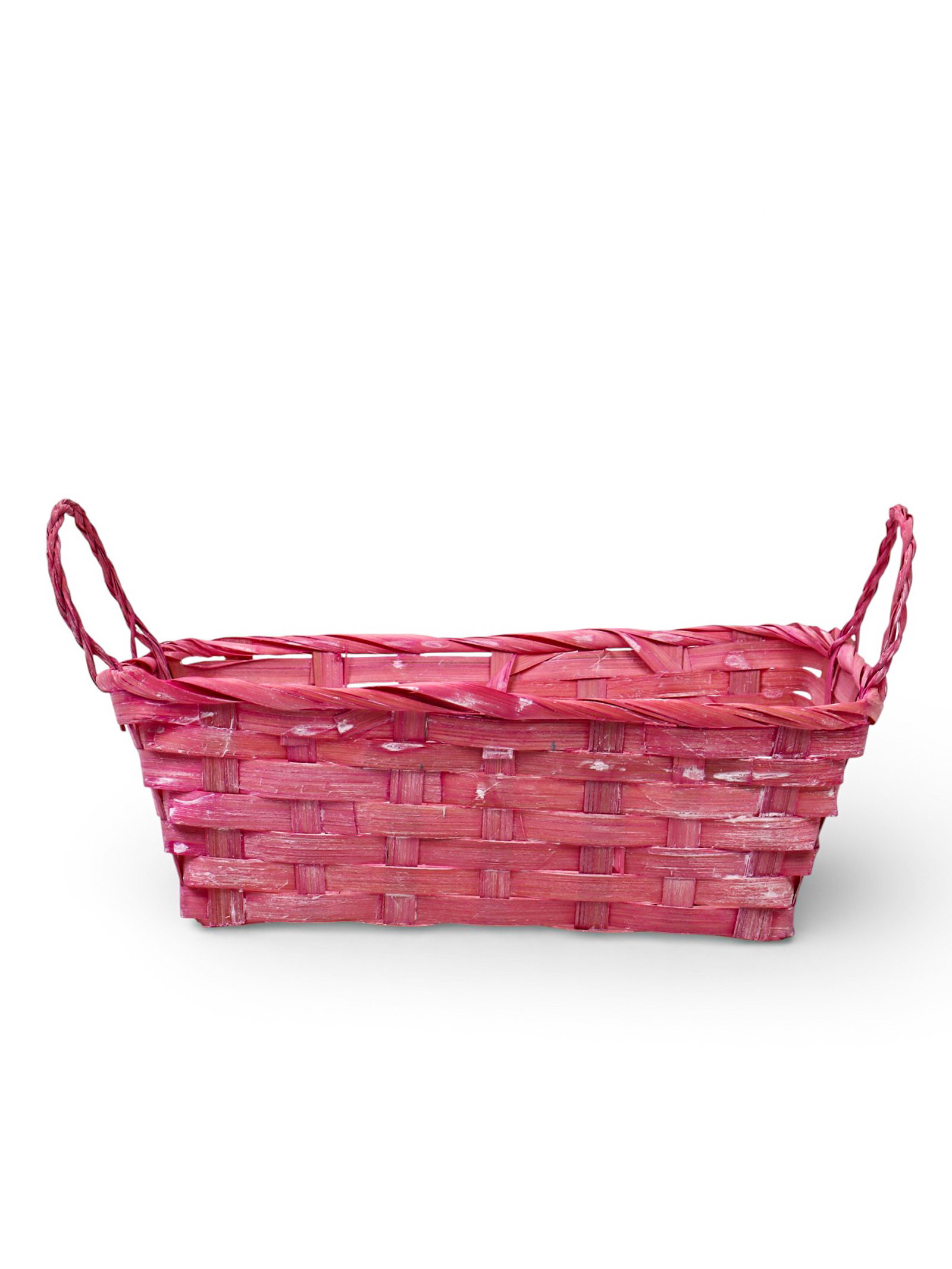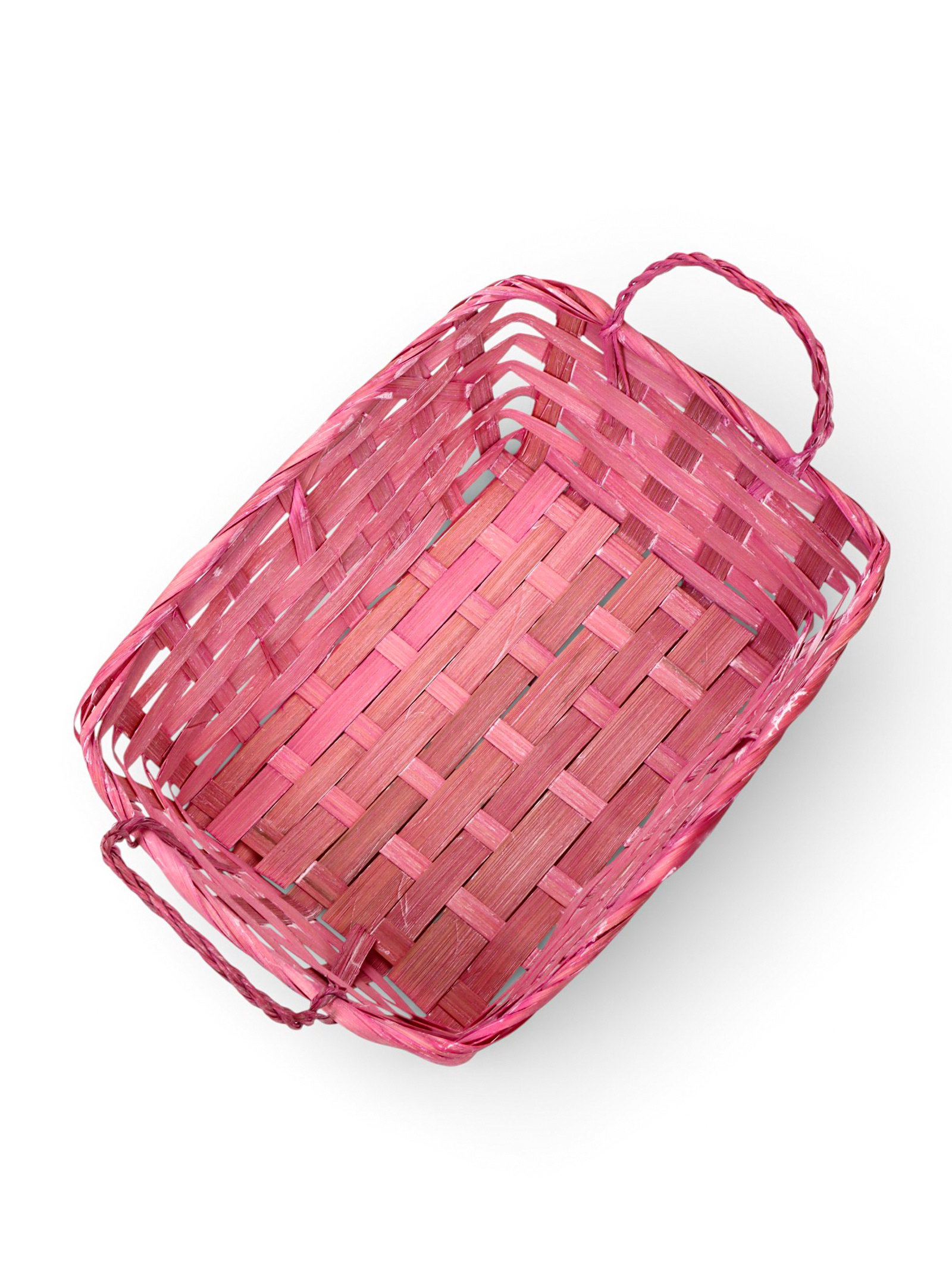 Корзина плетёная для хранения, 24x20x8 см, с ручками, бамбуковая, розовая, 20x24x8 см., Greengo, Китай