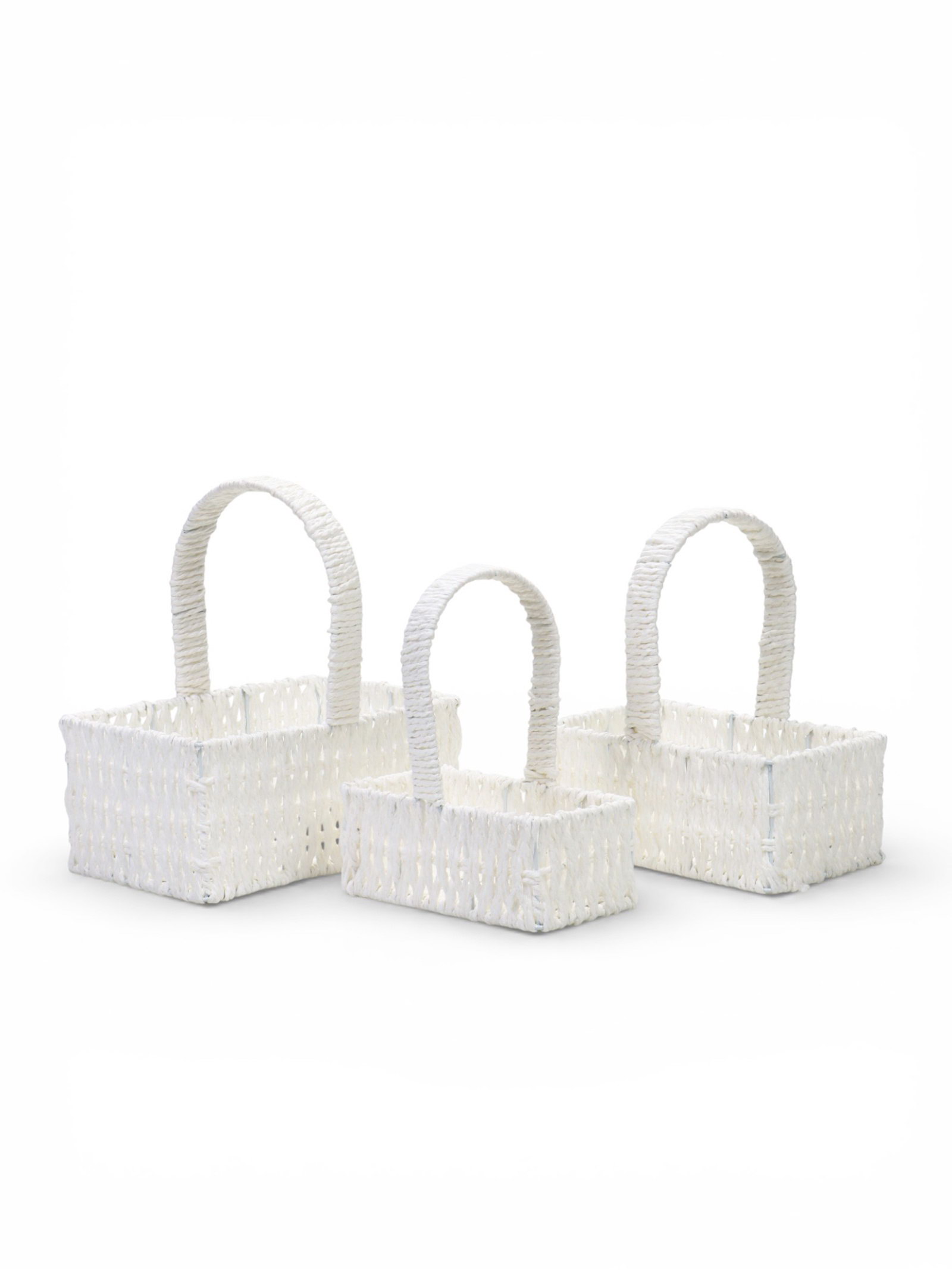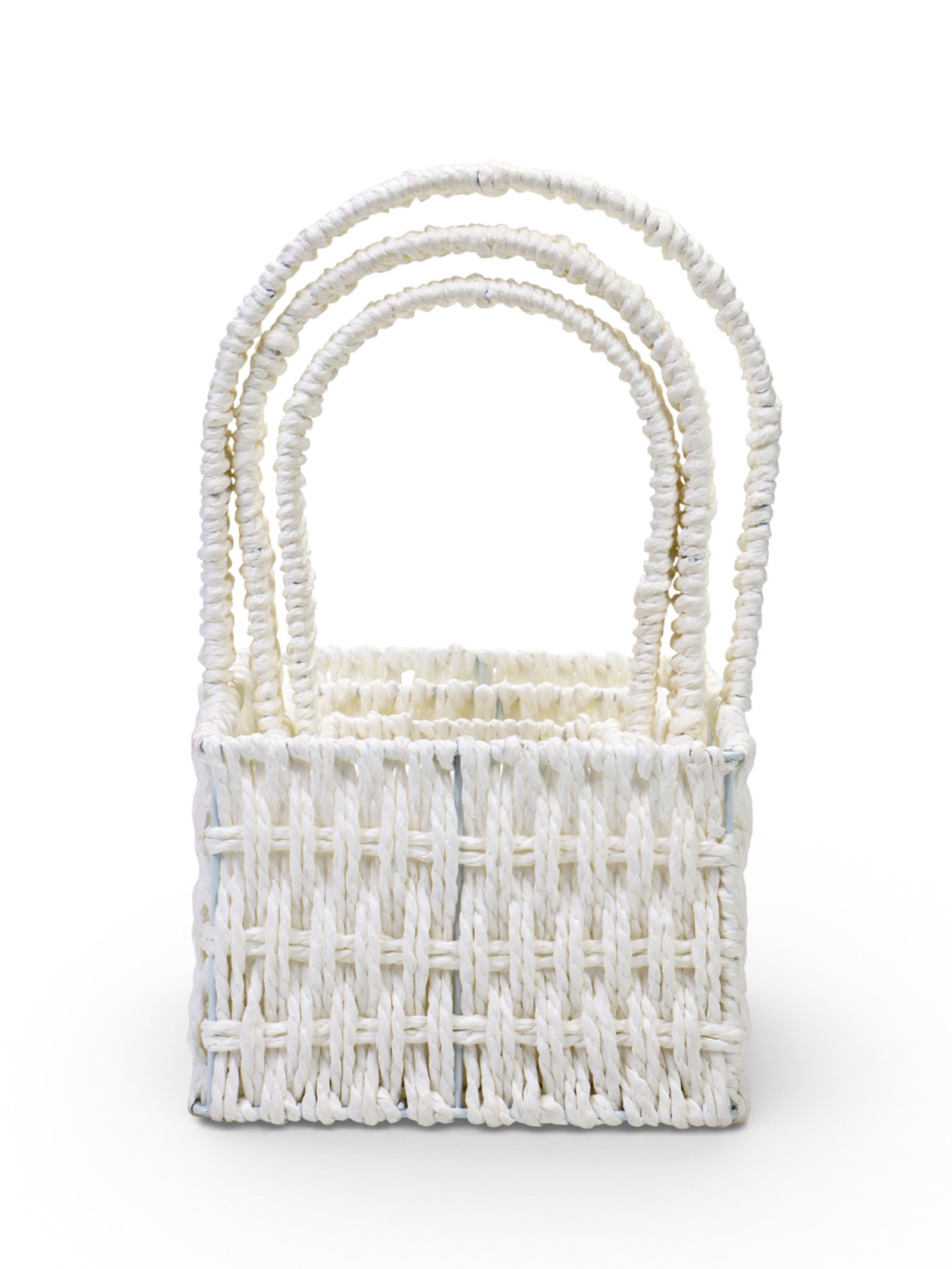 Корзина плетёная для хранения Cistella, с ручкой, пластиковая, белая, набор 3 шт., 16x25x20 см., Greengo, Китай