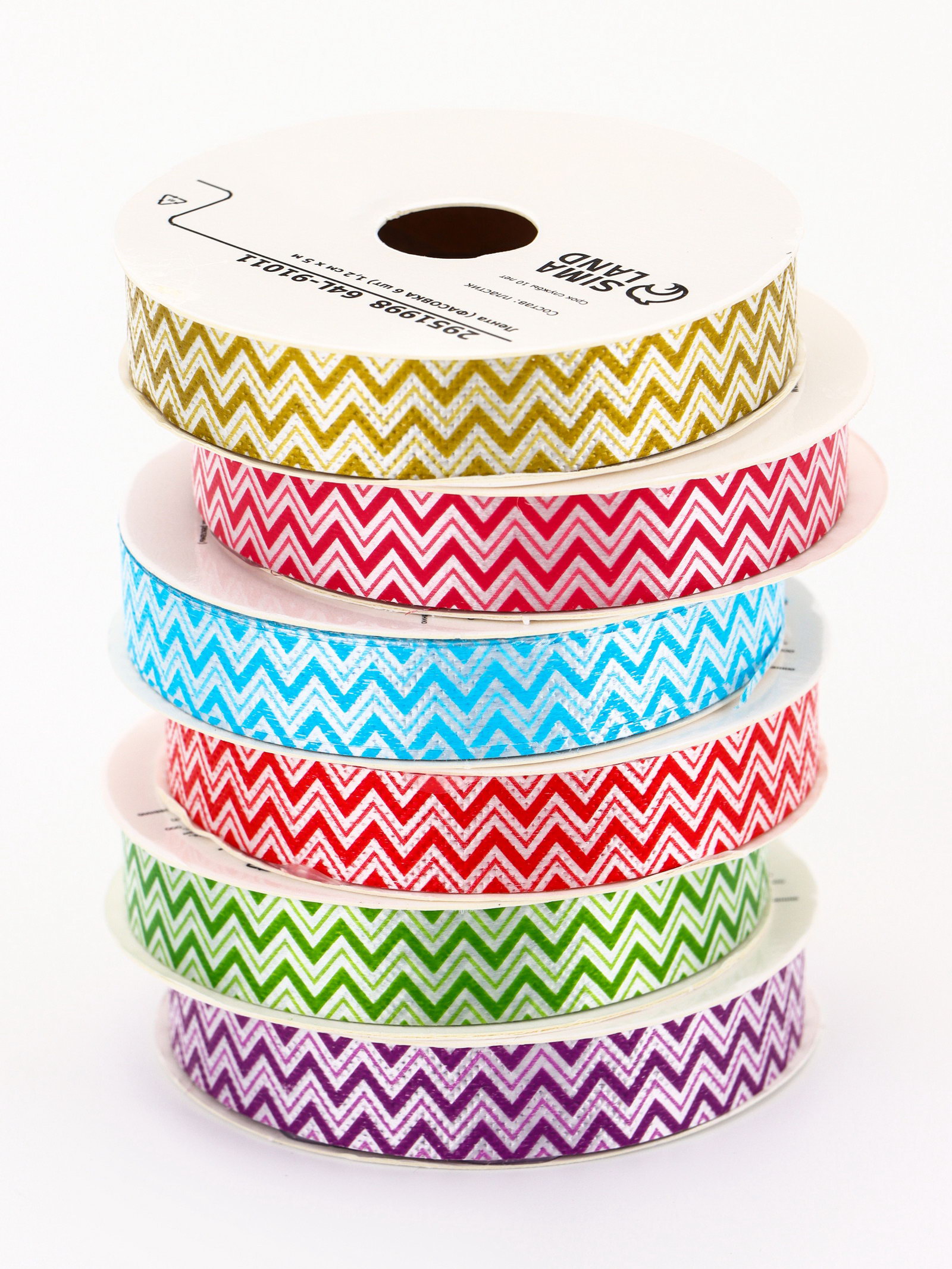 Лента упаковочная для декора и подарков, зигзаг, МИКС, 1.2 см x 5 м, 5x5x0.1 см., UPAK LAND, Китай