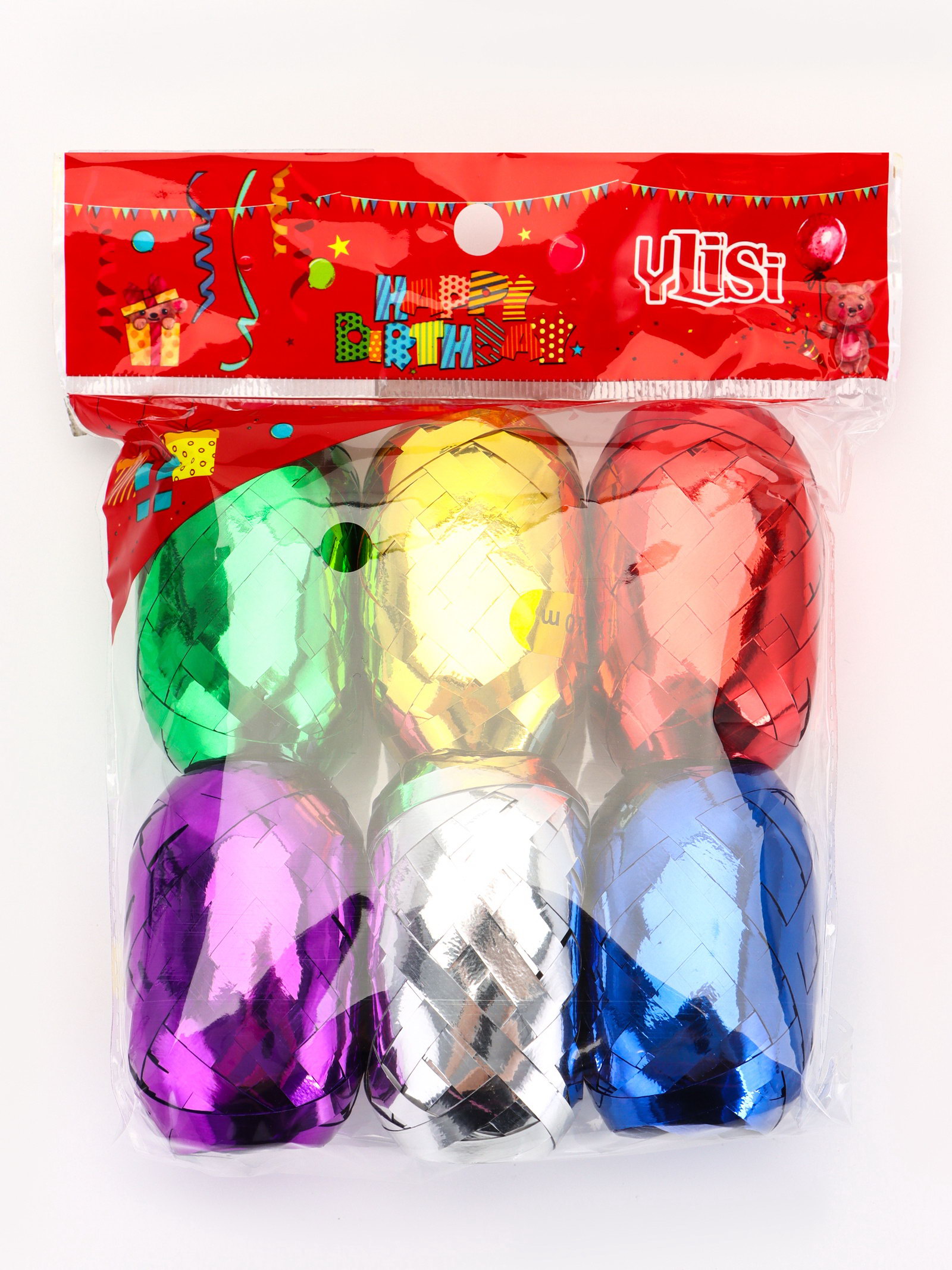 Лента упаковочная глянцевая, ассорти, набор 6 шт., 0.5 см x 10 м, 13x13x3.5 см., UPAK LAND, Китай
