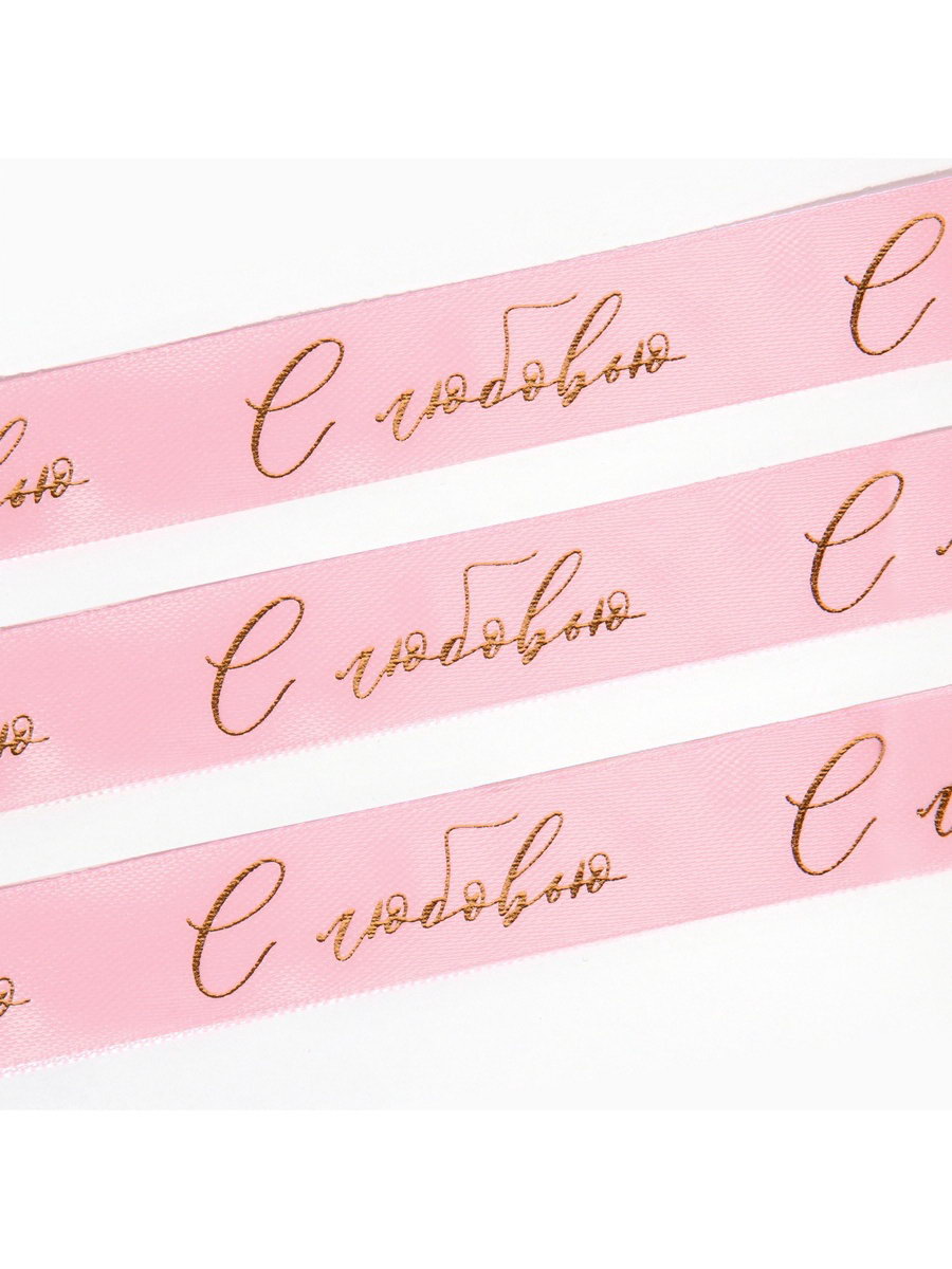 Лента атласная с тиснением "С любовью", розовая, 2 см x 22.5 м, 8x8x2 см., Дарите Счастье, Китай
