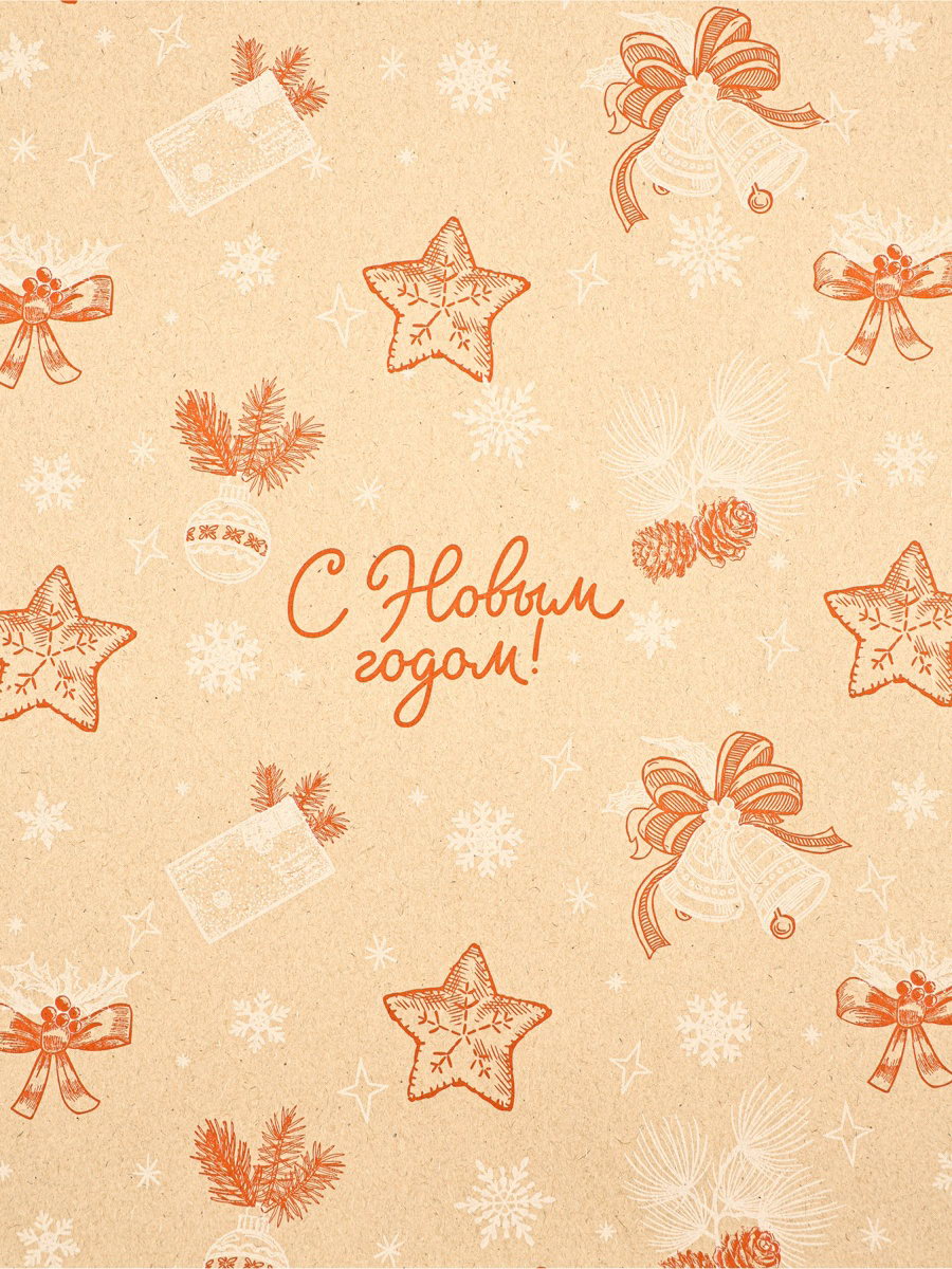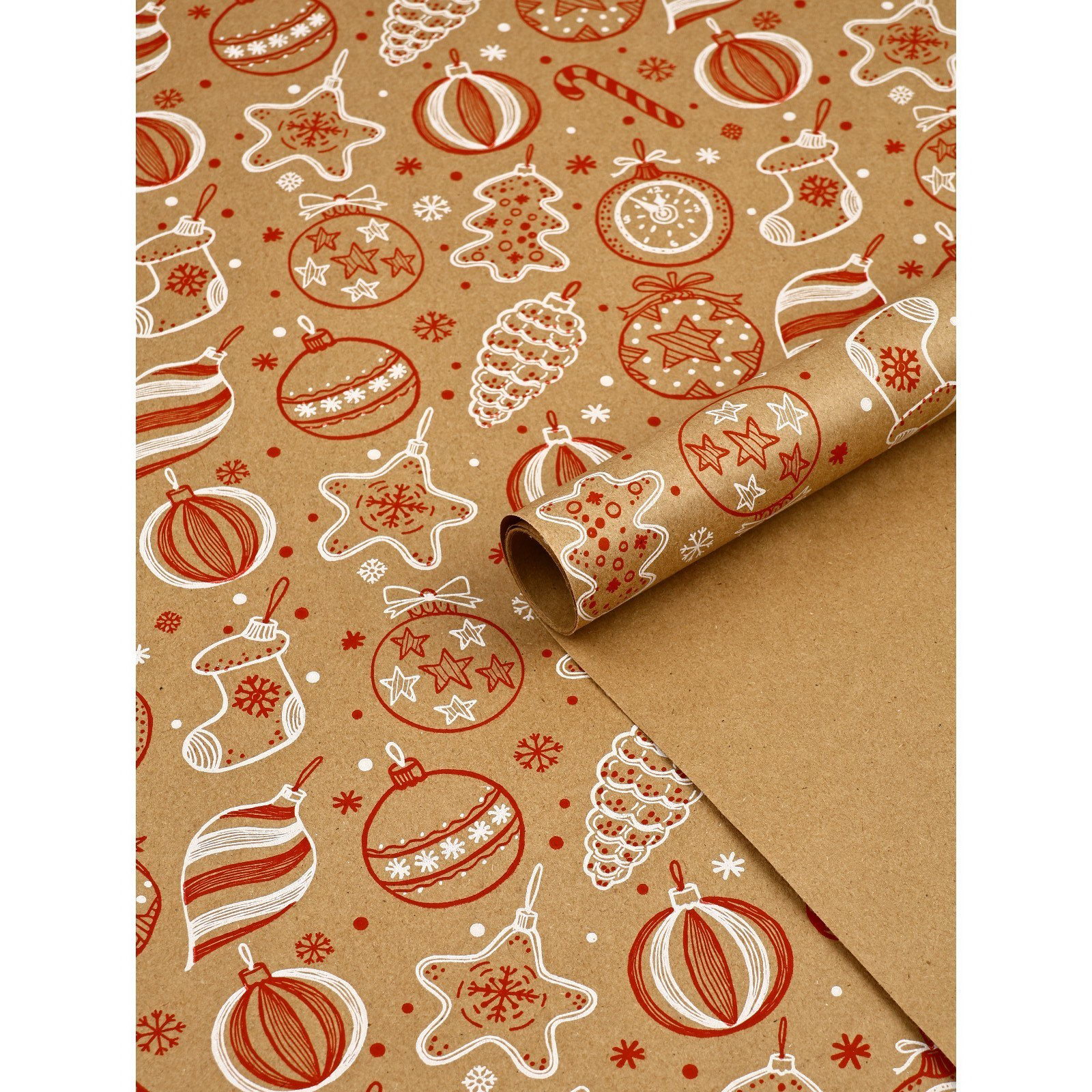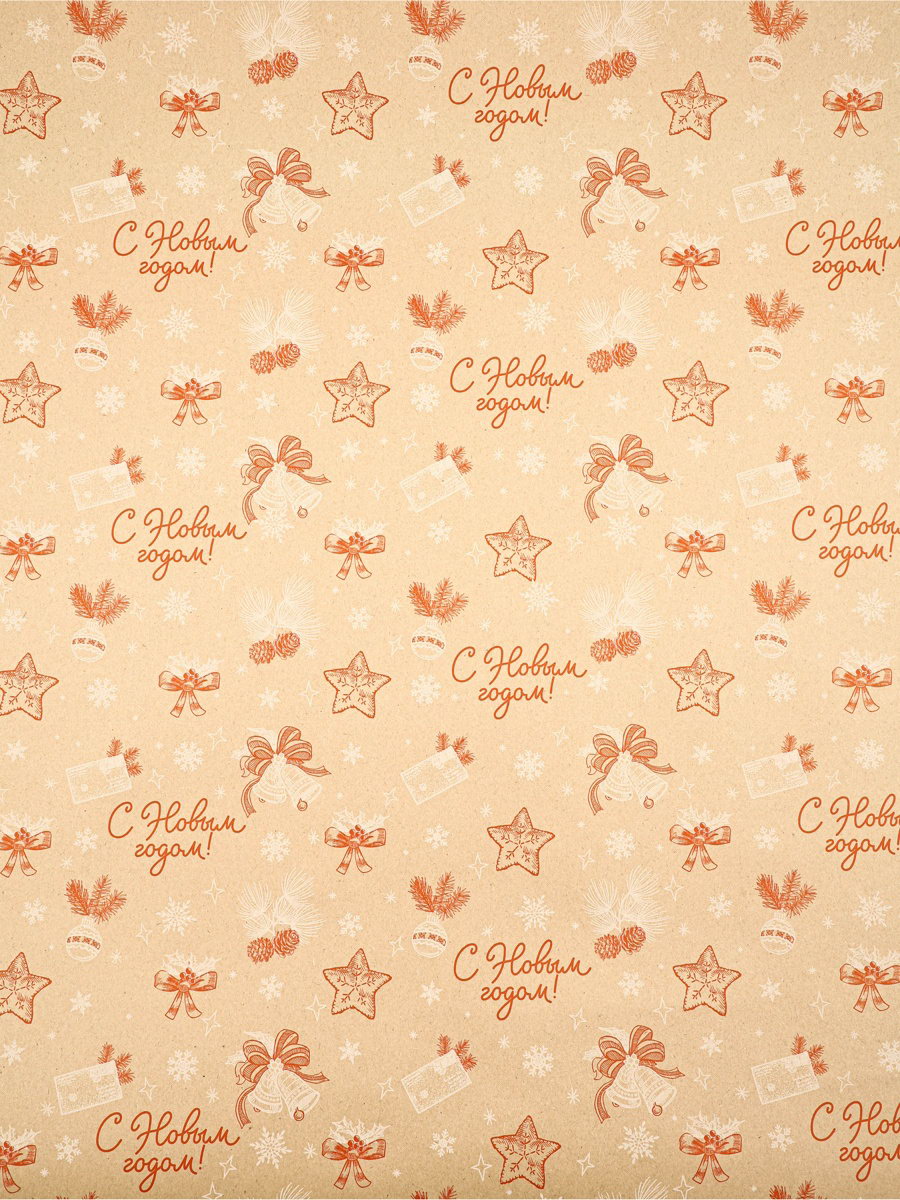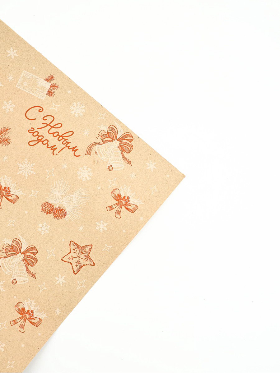 Бумага в тубусе крафтовая бурая в рулоне "Ёлочные игрушки", 0.68 x 7 м, Россия