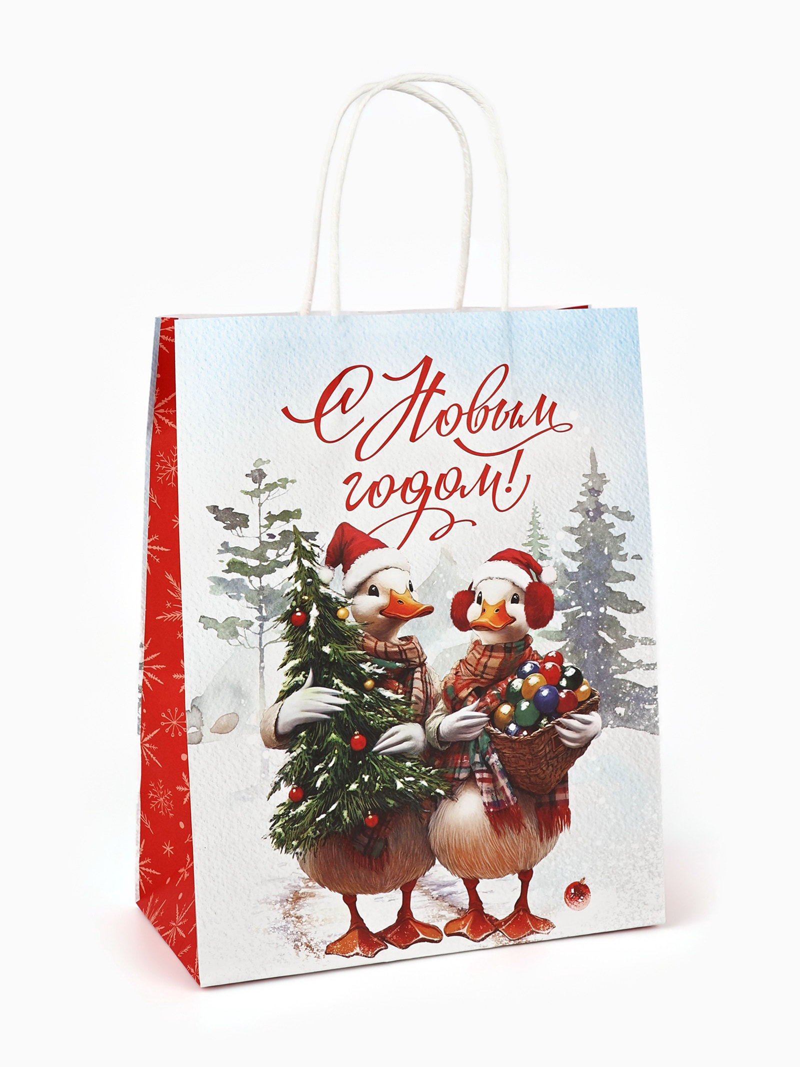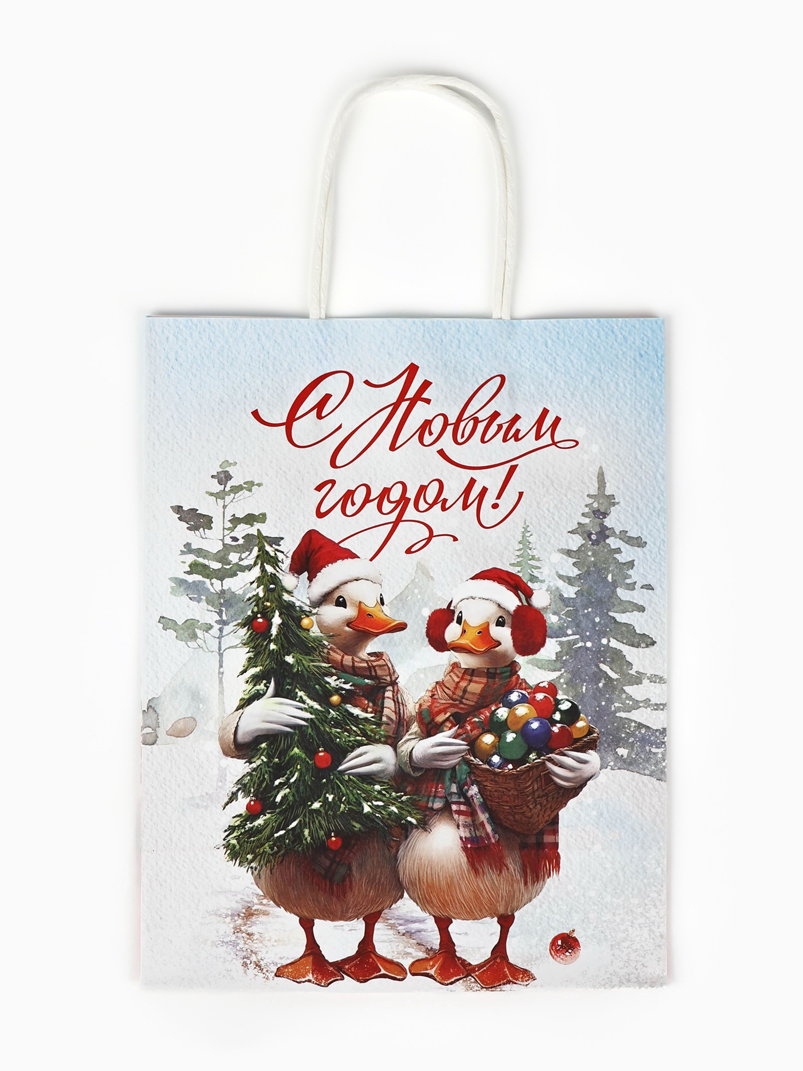 Набор пакетов крафтовых "С Новым счастьем!", 10 шт, 21 x 27 x 11 см, 27x21x11 см., Дарите Счастье, Китай