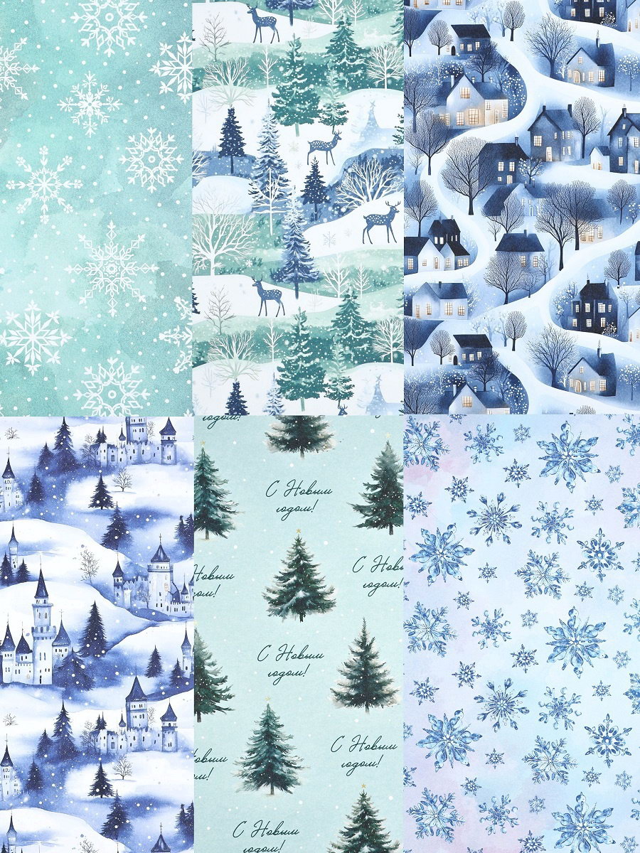 Набор упаковочной бумаги с наклейками, 6 листов, "Новый год", 70x100 см, Дарите Счастье, Россия