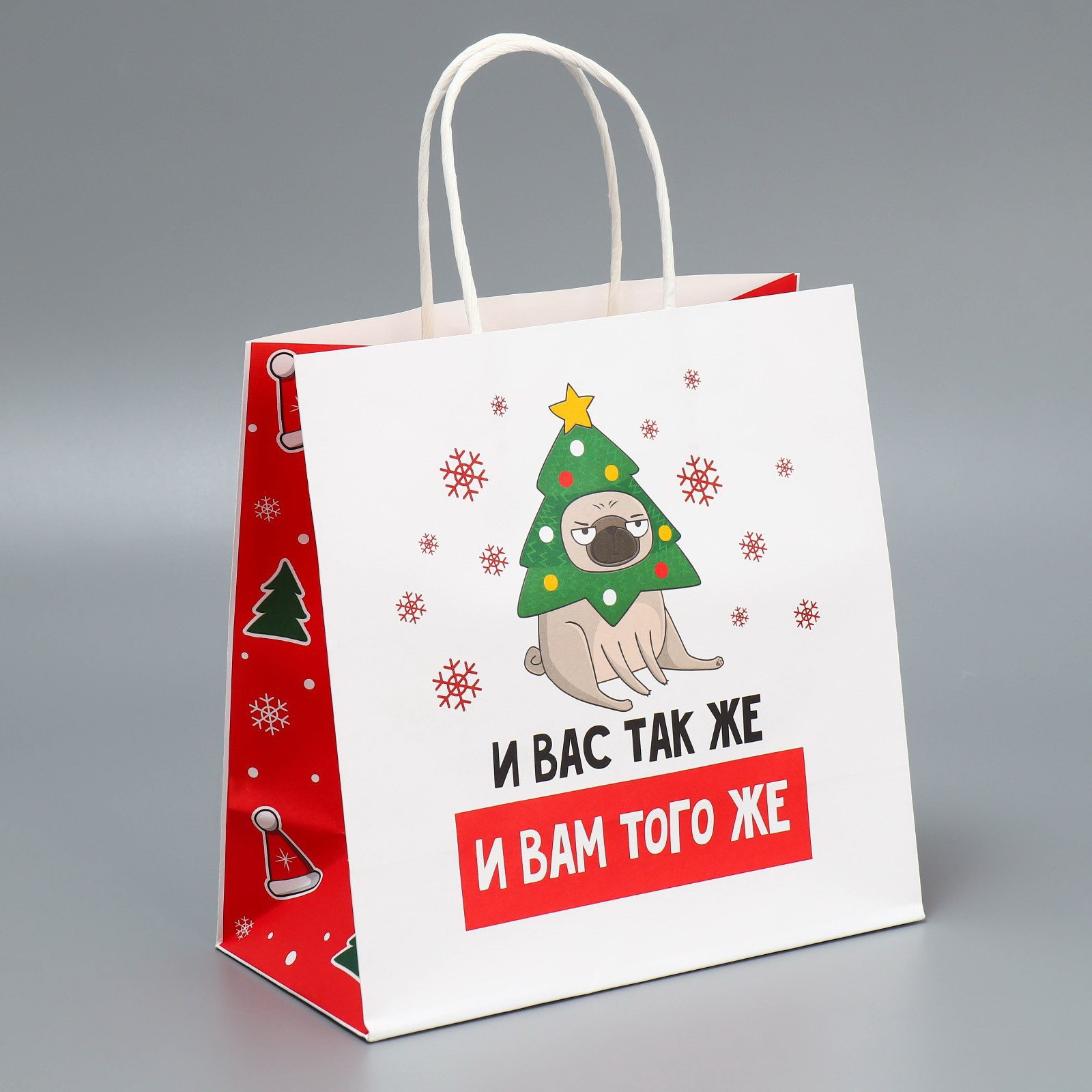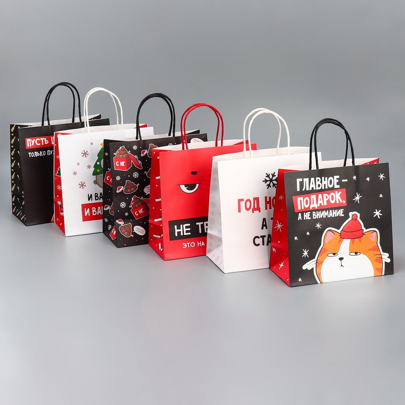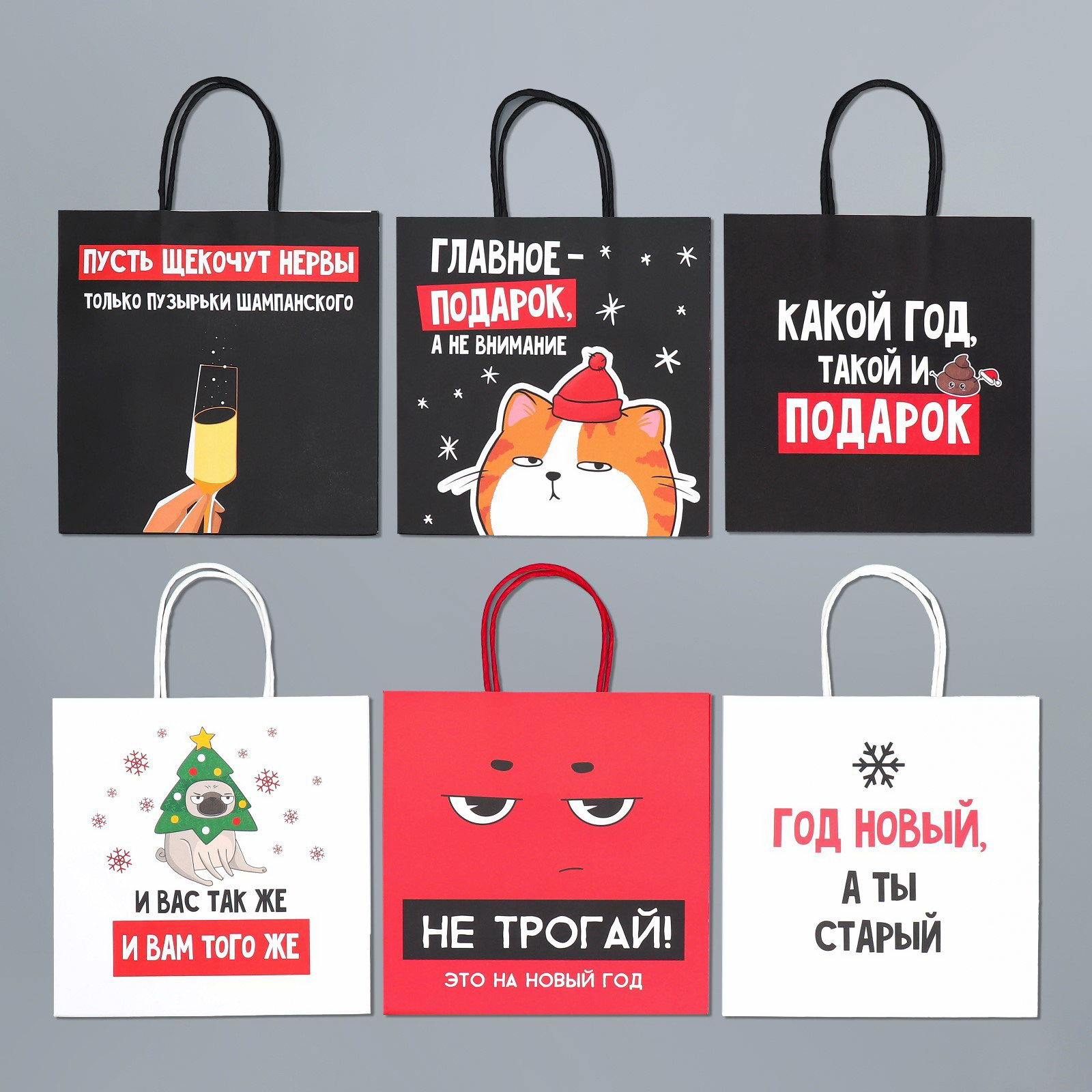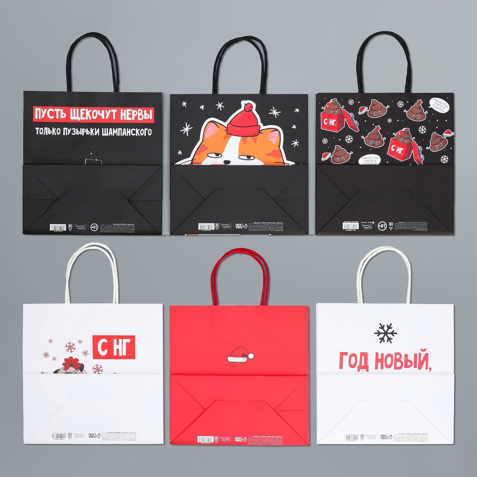 Набор новогодних пакетов "Это на Новый год", 22x22x11 см., Дарите Счастье, Китай