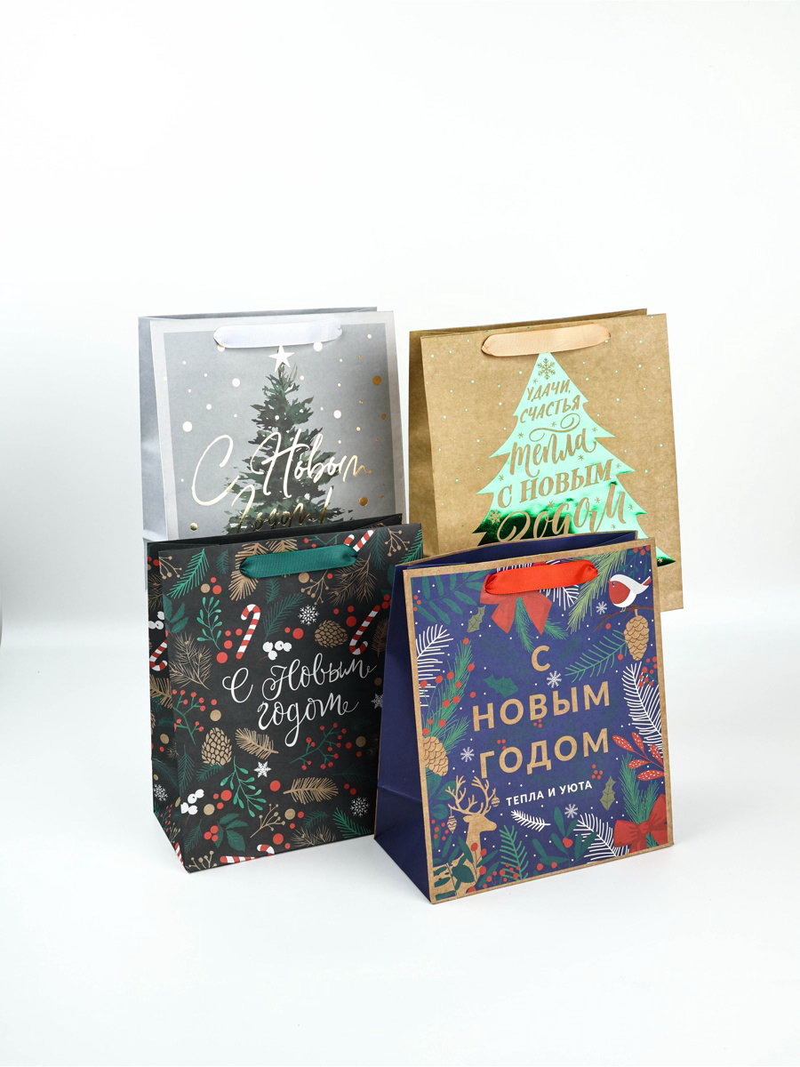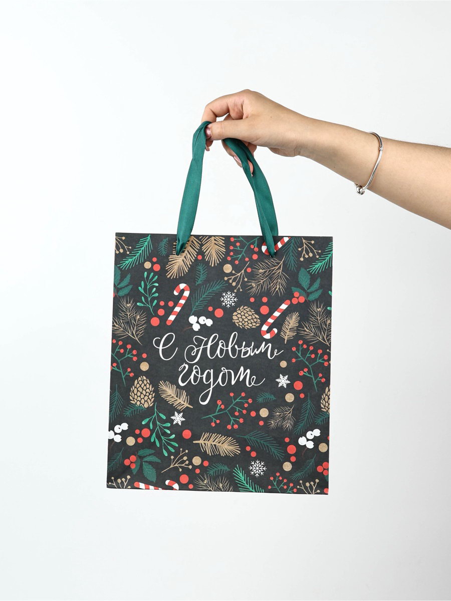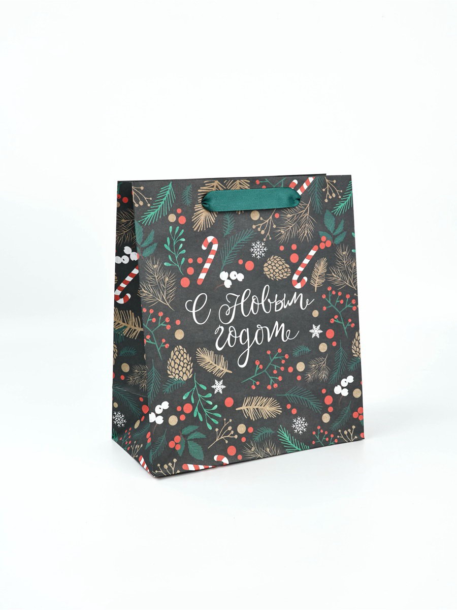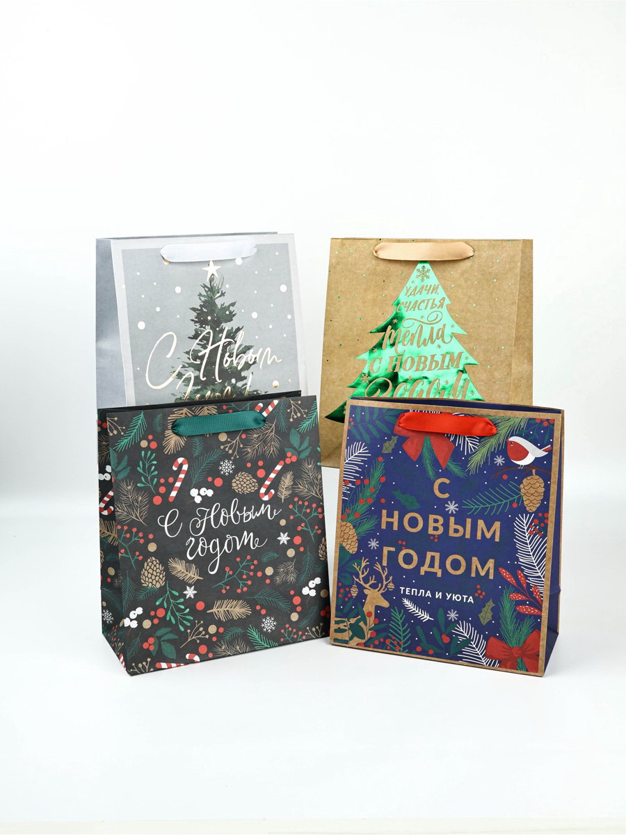 Набор новогодних пакетов "Еловый лес", 23x27x11.5 см., Дарите Счастье, Китай