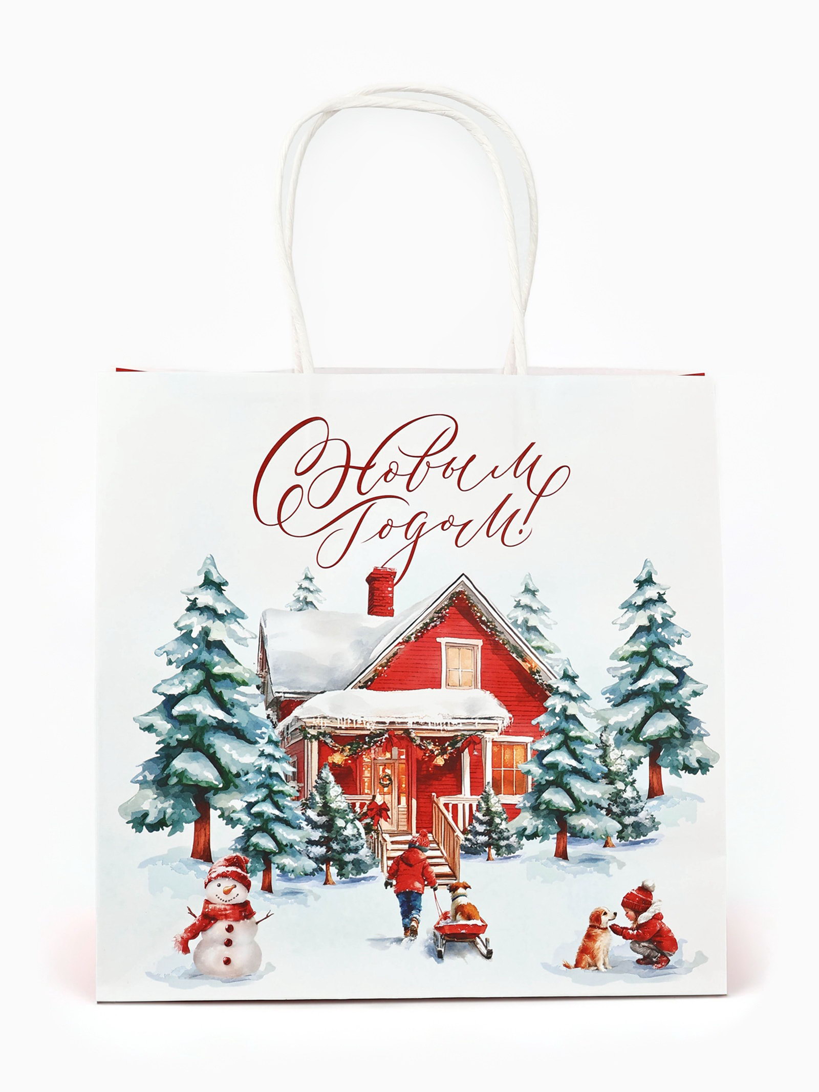 Набор пакетов крафтовых "Новогодний", 10 шт., 22x22x11 см, 22x22x11 см., Дарите Счастье, Китай