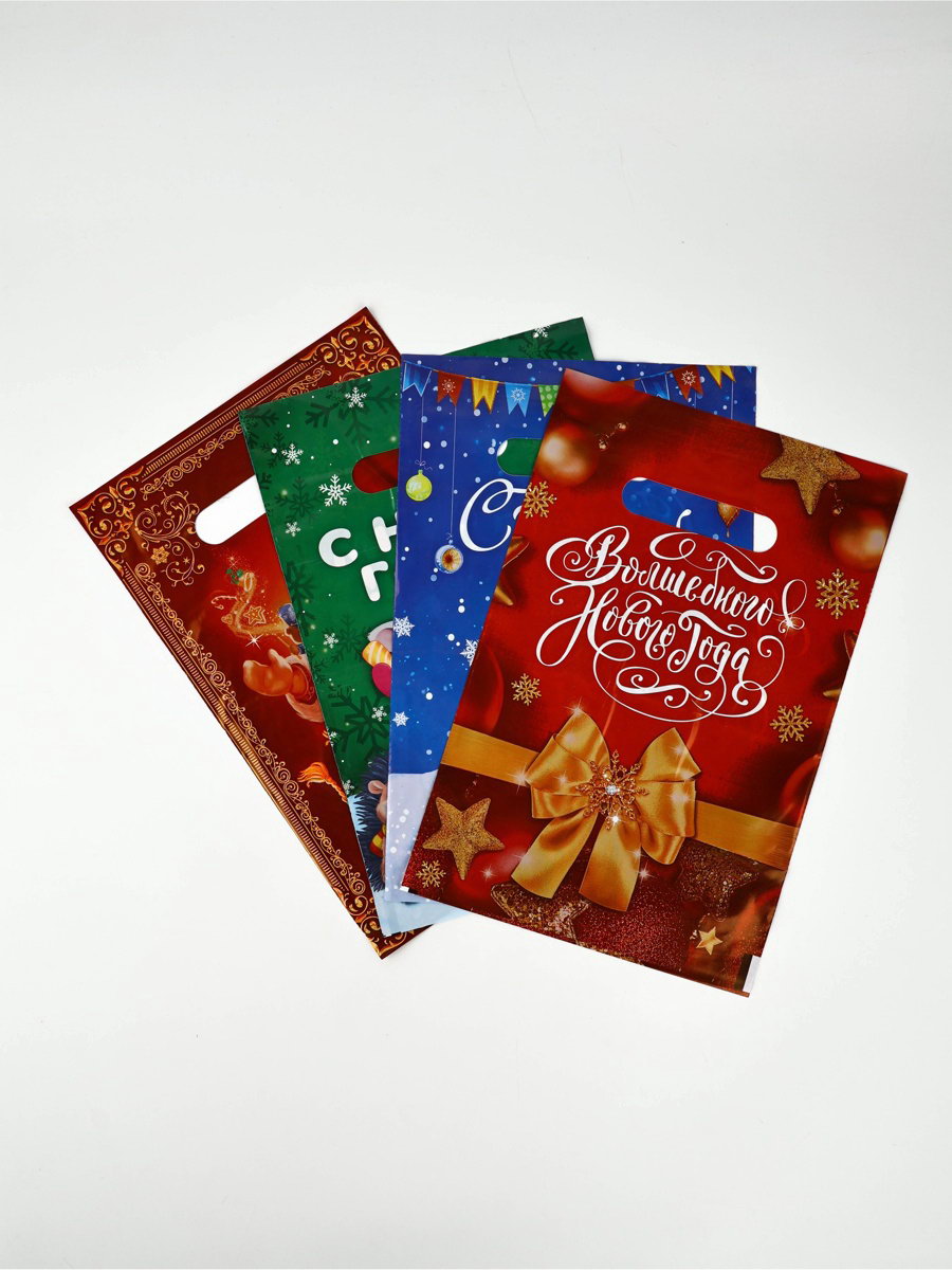 Набор подарочных пакетов, полиэтилен, 4 вида, 20 шт., "Новый год", 20x30 см, Дарите Счастье, Россия