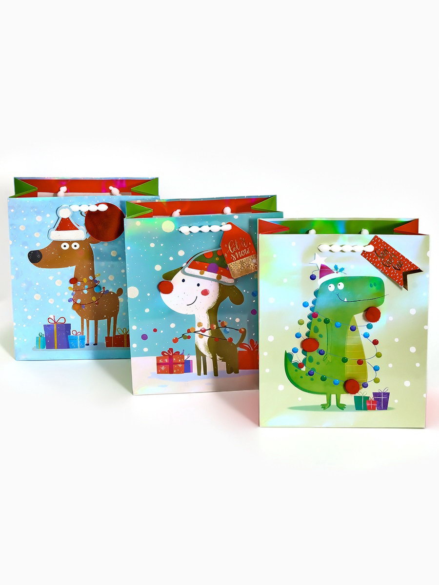 Набор подарочных пакетов "Новый год", 3 шт, 25.4 x 30.5 x 12.7 см, Дарите Счастье, Китай