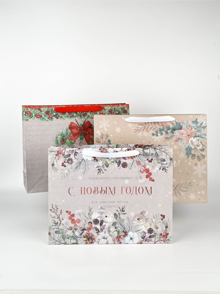 Набор новогодних пакетов "Спешу поздравить", 40x11.5x31 см., Дарите Счастье, Китай