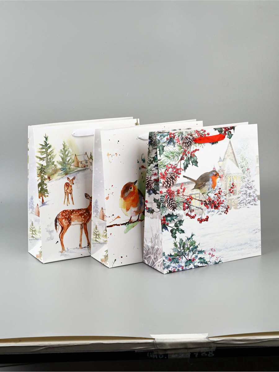 Набор пакетов "Новый год", 3 шт, 26 x 30 x 9 см, 9x26x30 см., Дарите Счастье, Китай