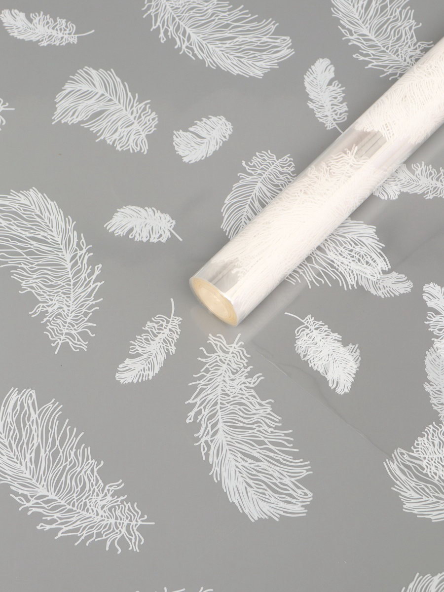 Плёнка для цветов "Перышки", прозрачная/белая, 0.6x9.3+-5% м, 40 мкм, 200 г, Россия