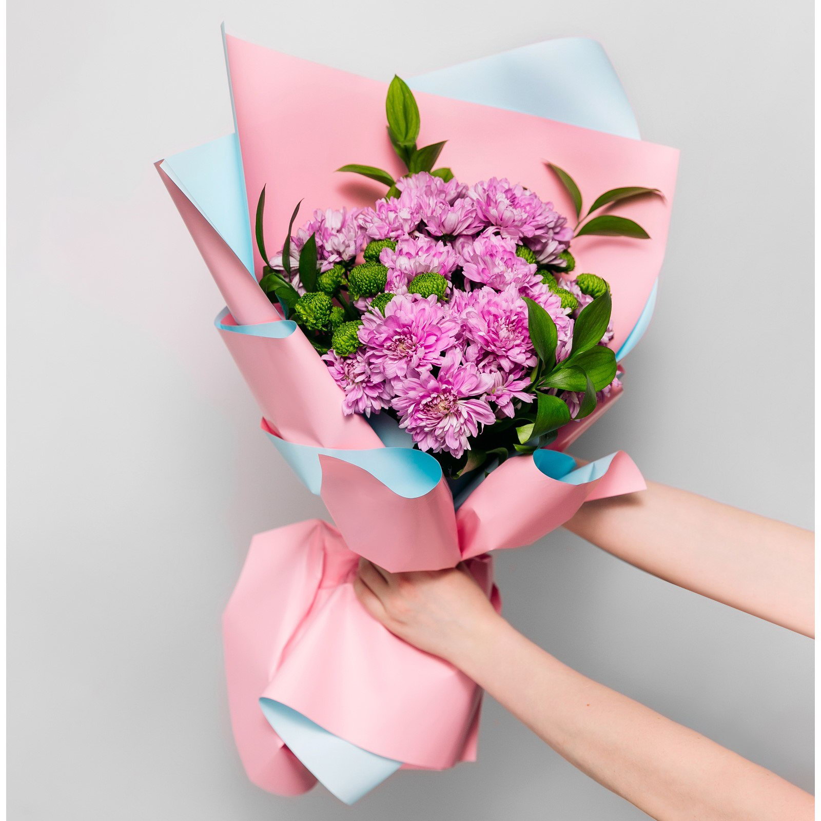 Плёнка для цветов упаковочная пудровая двухсторонняя "Розовый+голубой", 50 мкм, 0.5x9 м, Дарите Счастье, Россия
