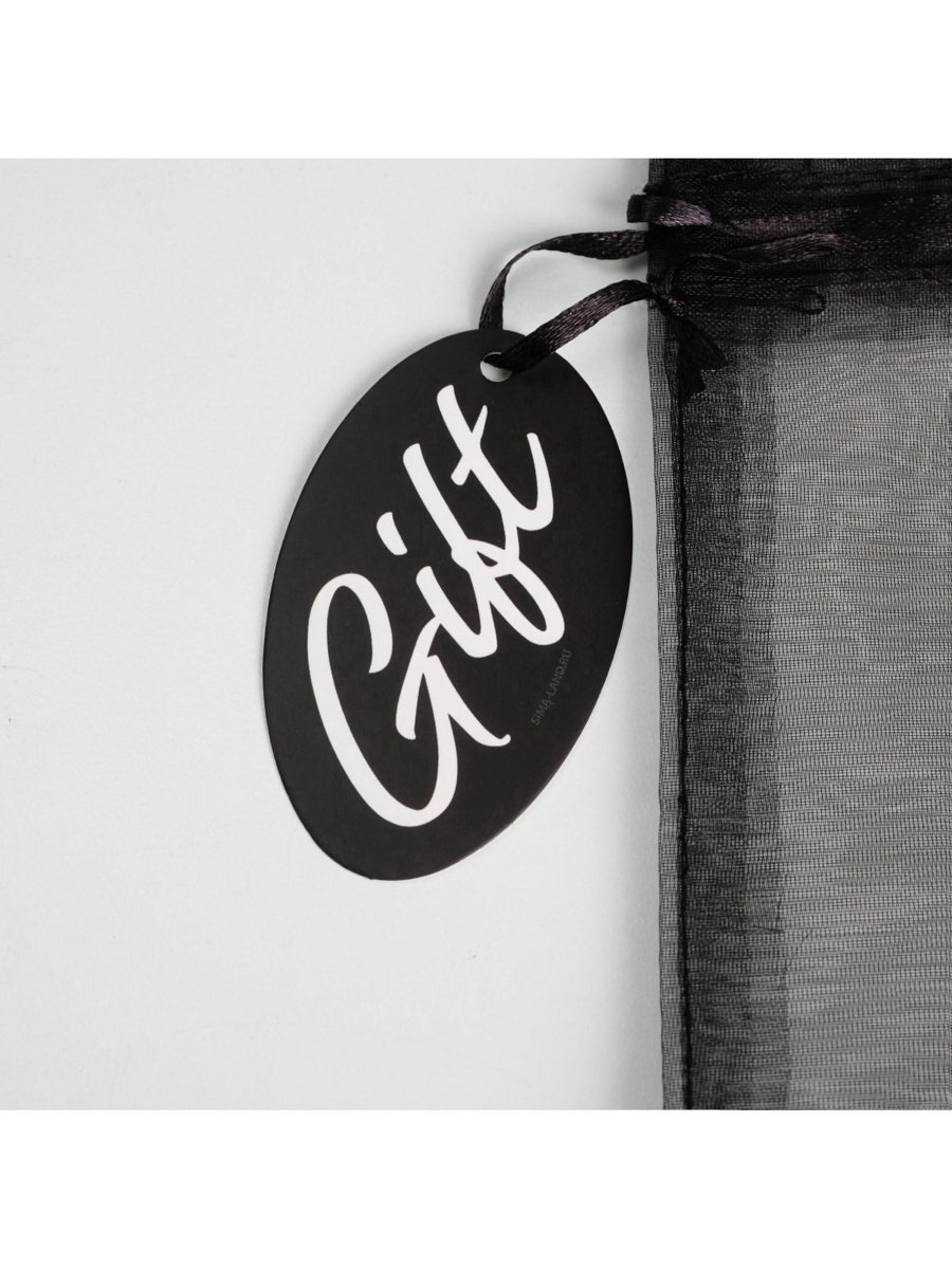 Мешочек подарочный органза черный "Подарок", с шильдиком, 16 x 24 см +/- 1.5 см, 0.1x16x24 см., Дарите Счастье, Китай