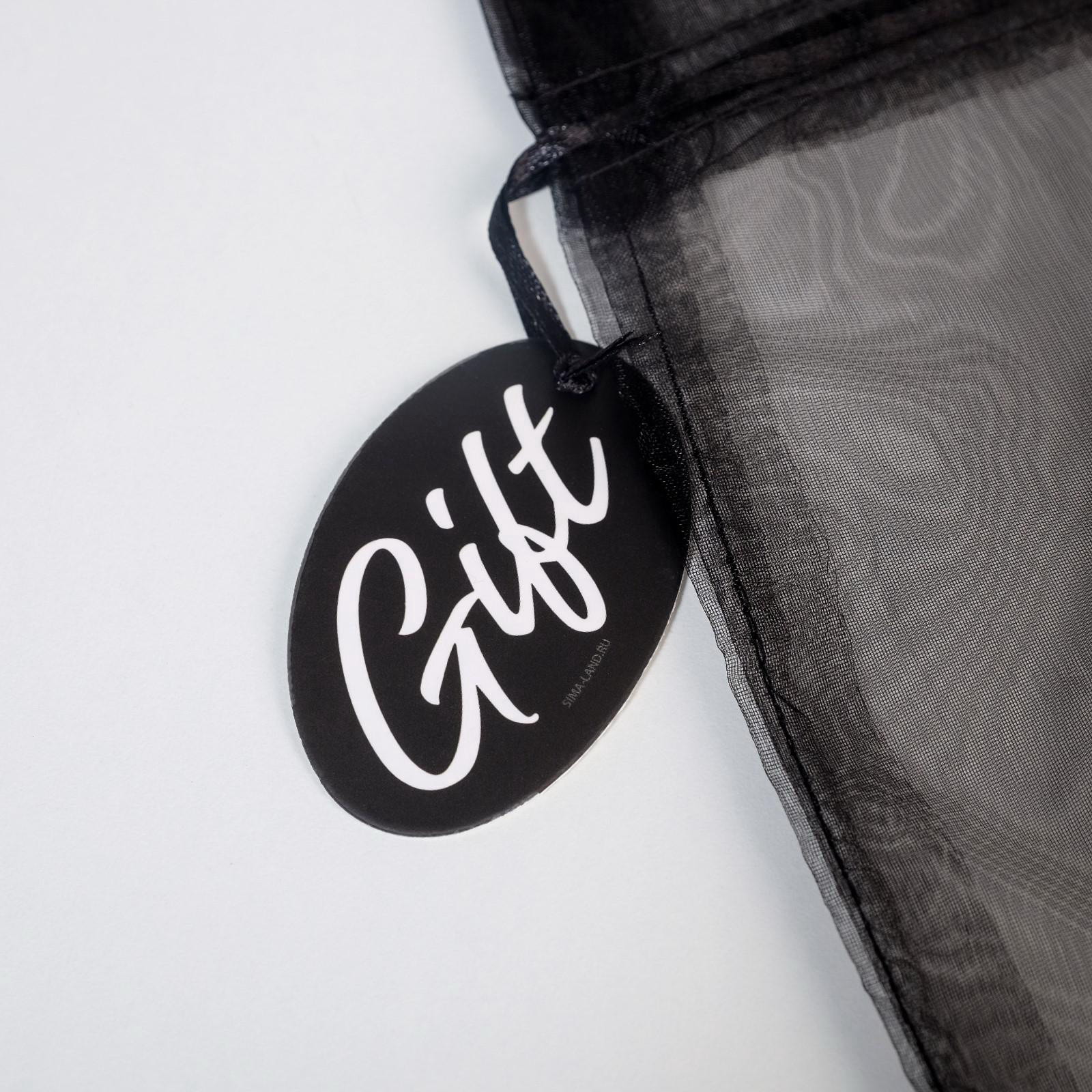 Мешочек подарочный органза черный "Подарок", с шильдиком, 19 x 28 см +/- 1.5 см, 0.1x20x30 см., Дарите Счастье, Китай