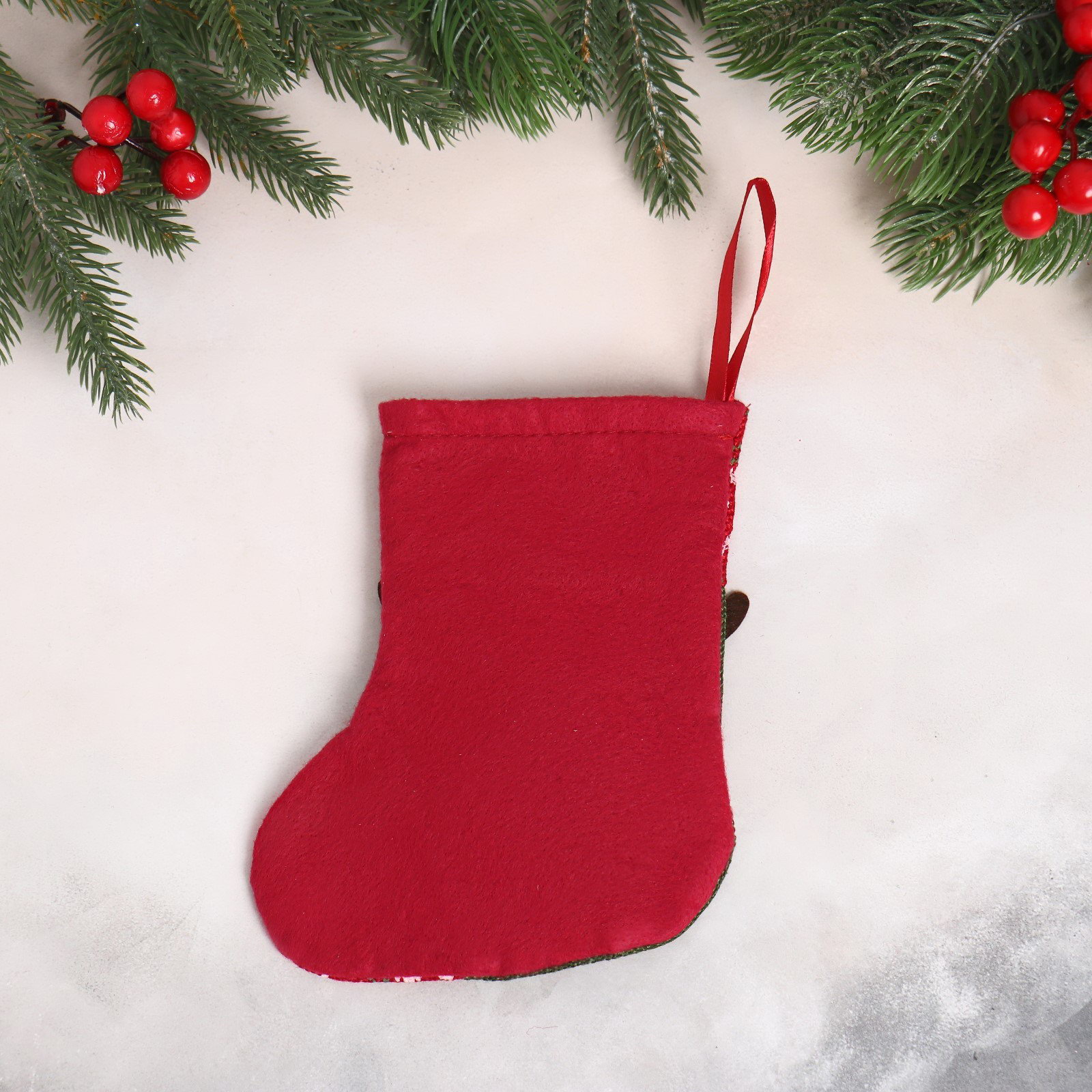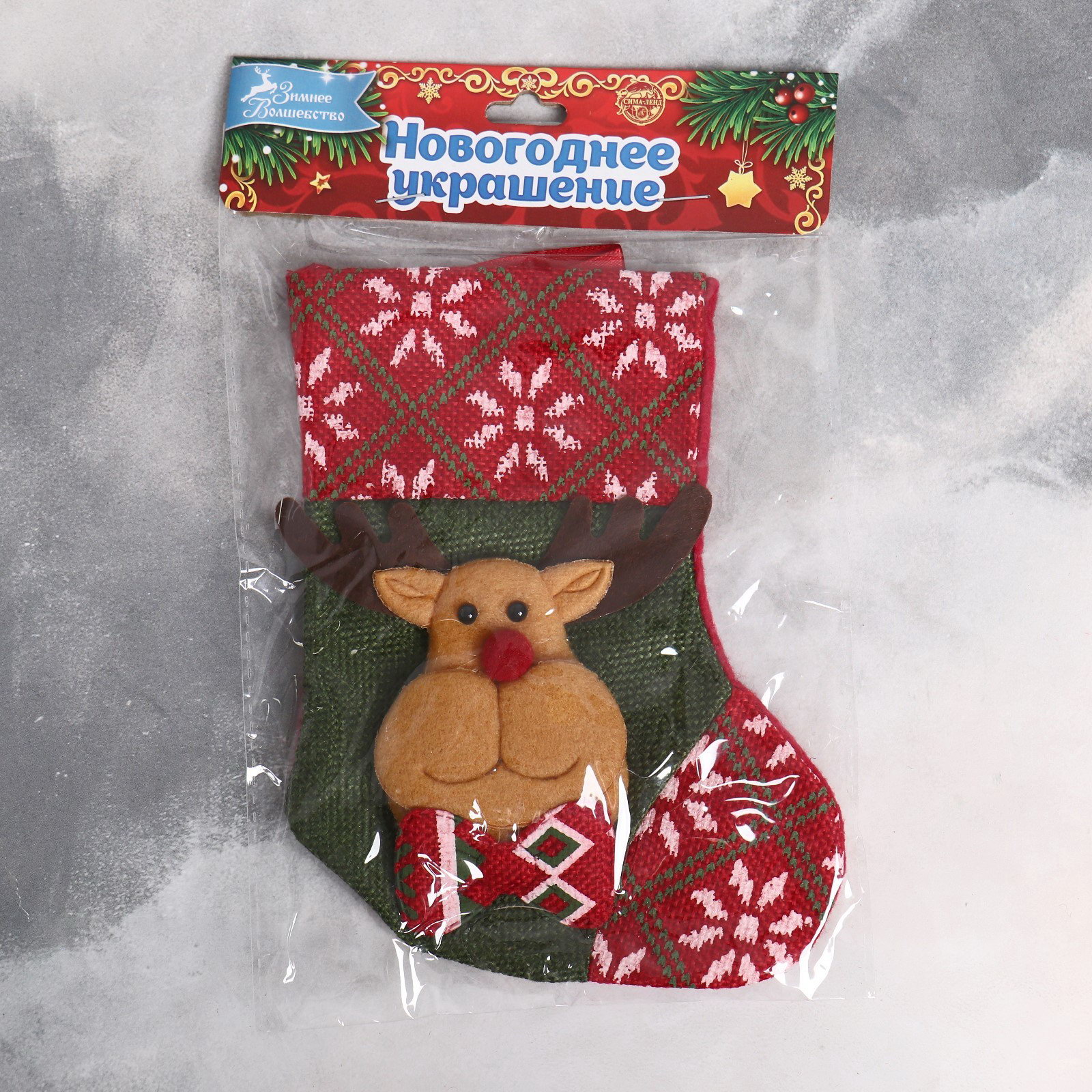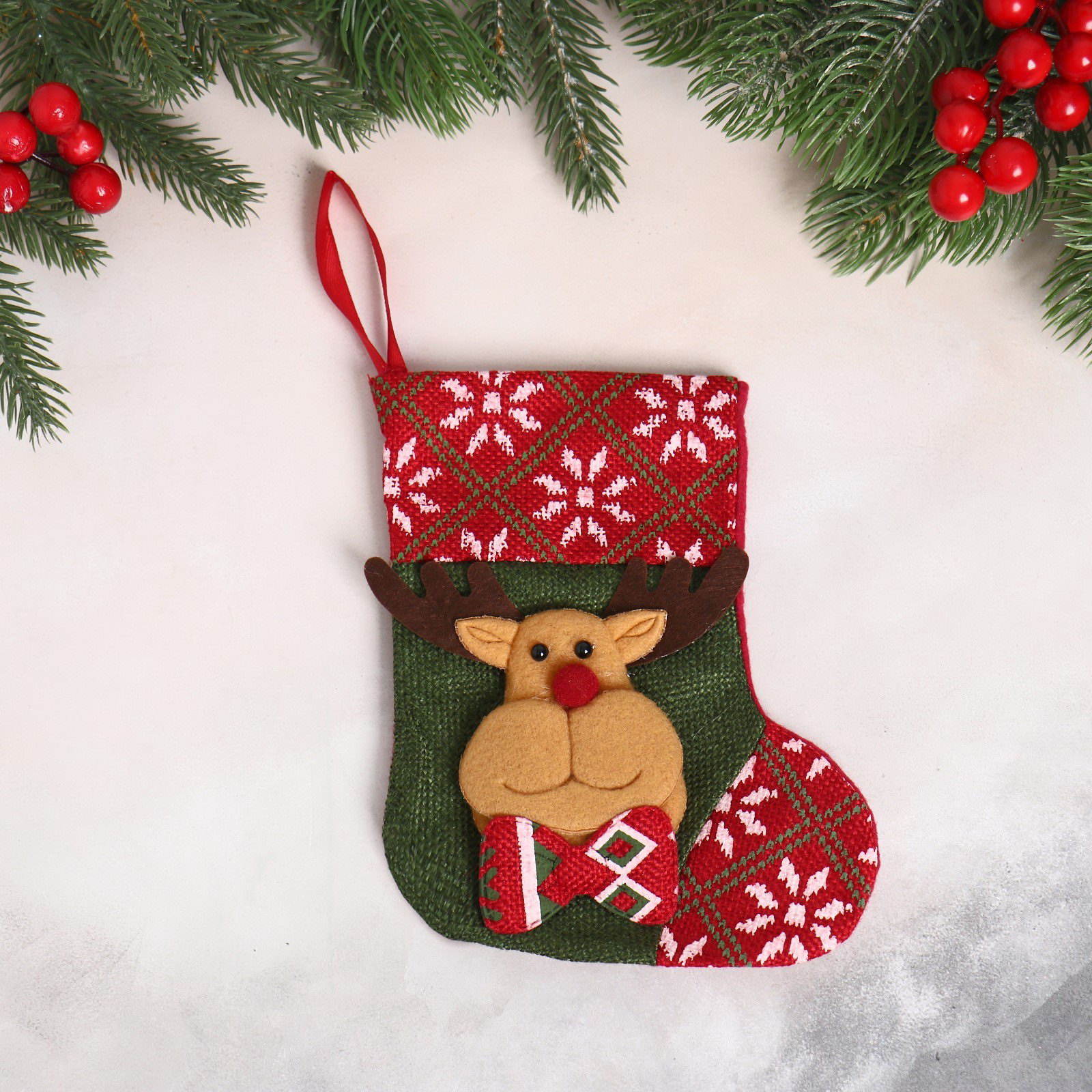 Мягкая подвеска "Носок - олень с бабочкой" 13х17 см, красно-зелёный, 13x17 см., Зимнее волшебство, Китай
