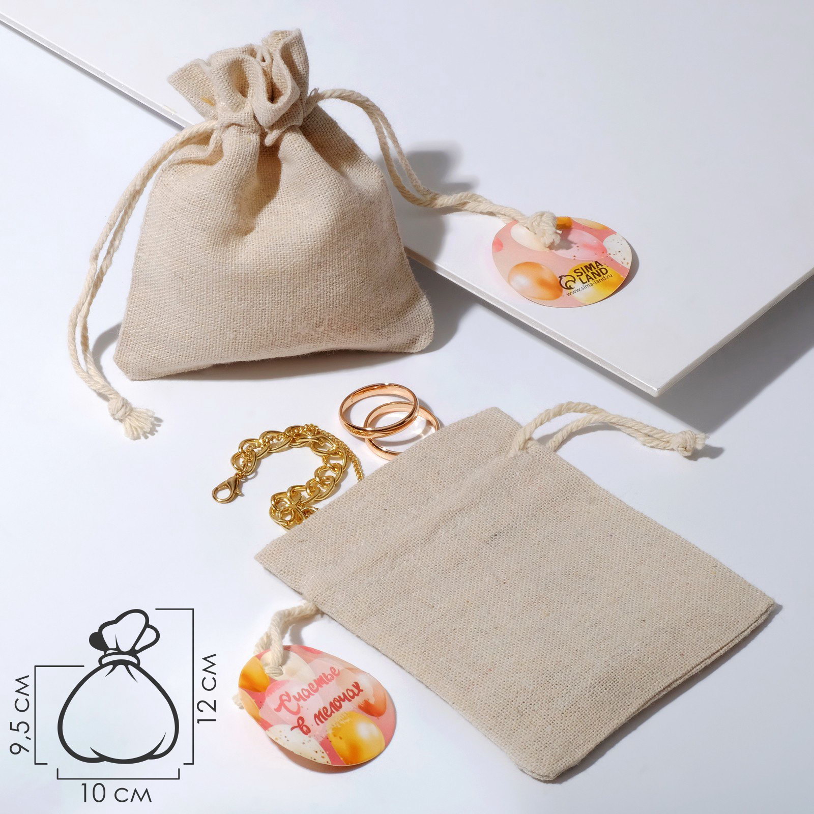 Мешочек подарочный "Счастье", лён, 10x12 см, цвет кремовый, 0.3x10x12 см., Китай