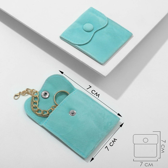 Конвертик для украшений бархатный, 7x7 см, бирюзовый, 0.4x7x7 см., Китай