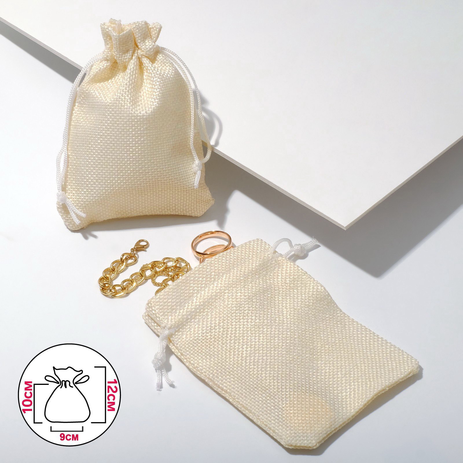 Мешочек подарочный "Льняной", 9x12 см, бежевый, 0.2x9x12 см., Китай