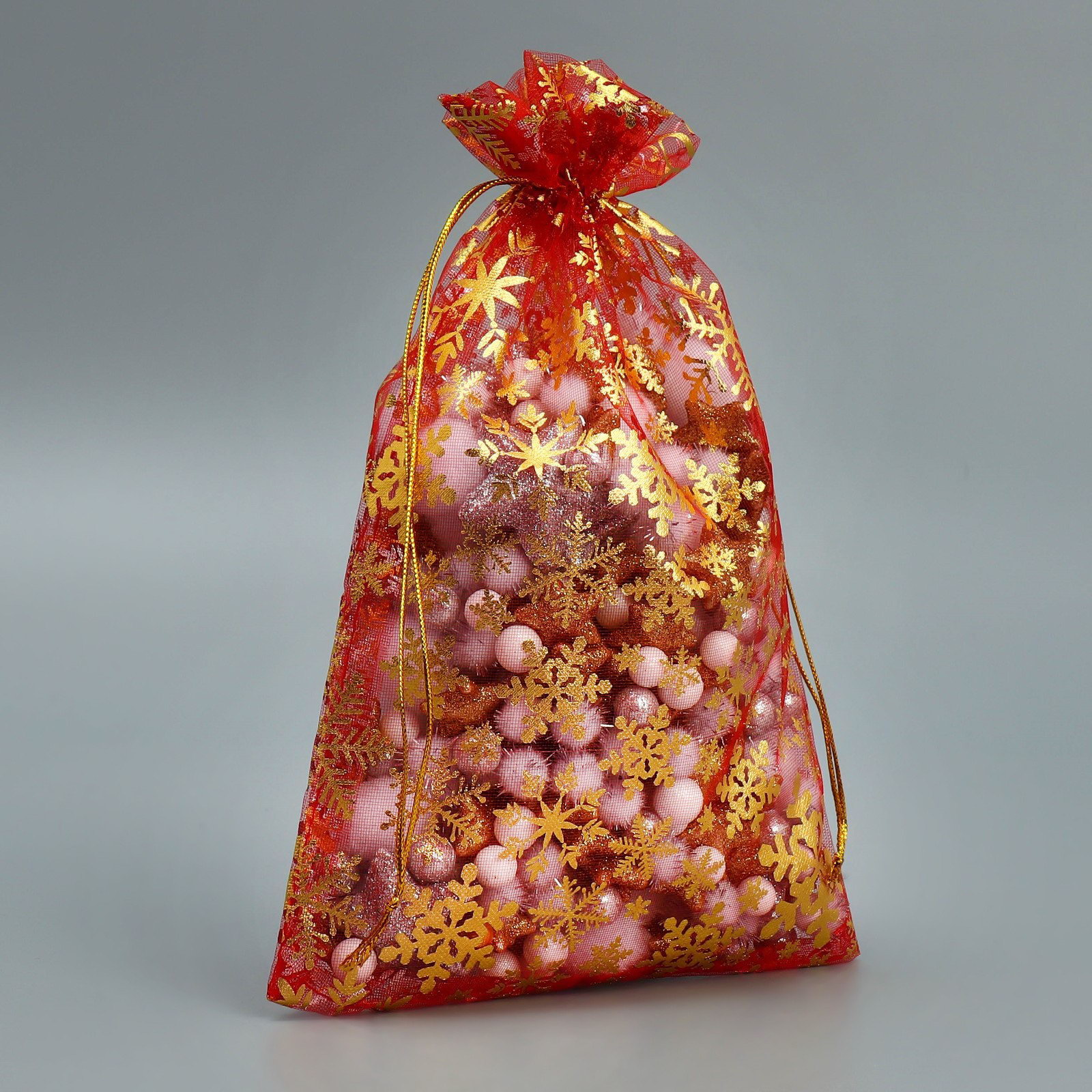 Мешочек подарочный органза "С Новым годом!", 16 x 24 см +/- 1.5 см, 24x16x0.1 см., Дарите Счастье, Китай