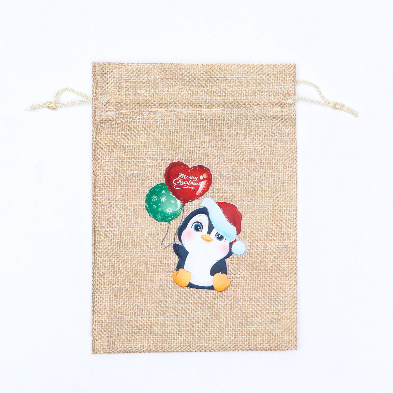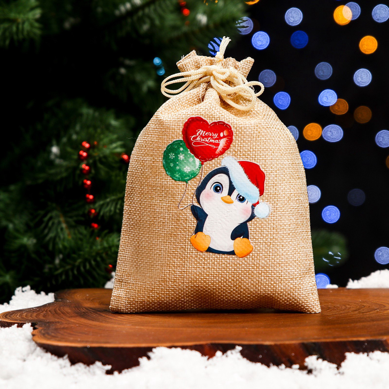 Мешок подарочный новогодний с термонаклейкой "Пингвин", 13x18 см, UPAK LAND, Китай