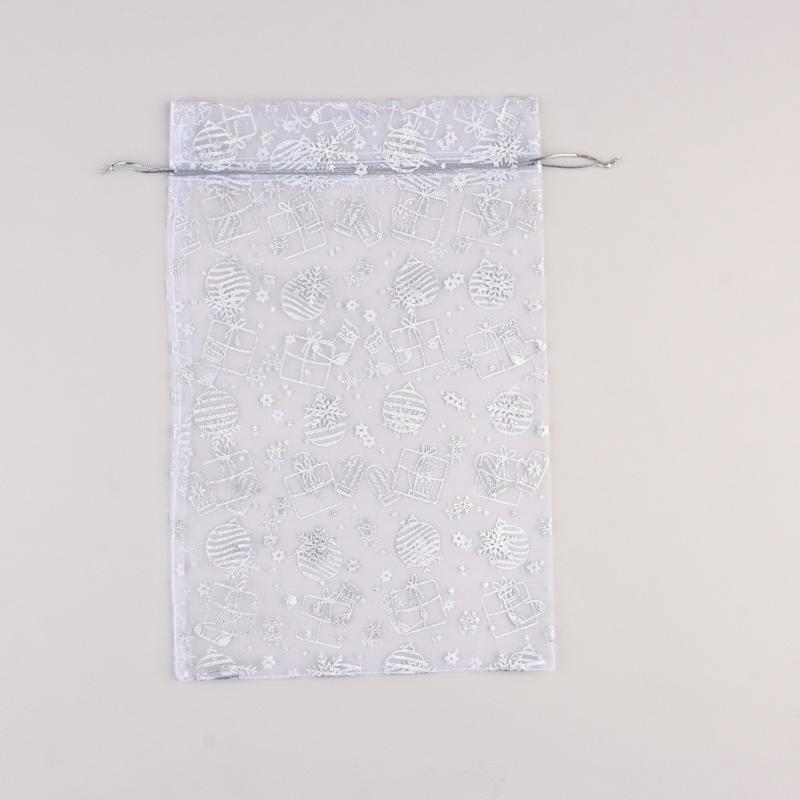 Мешочек подарочный "Новогодние подарки", органза, белый, 20 x 30 см, 30x20x0.1 см., Дарите Счастье, Китай