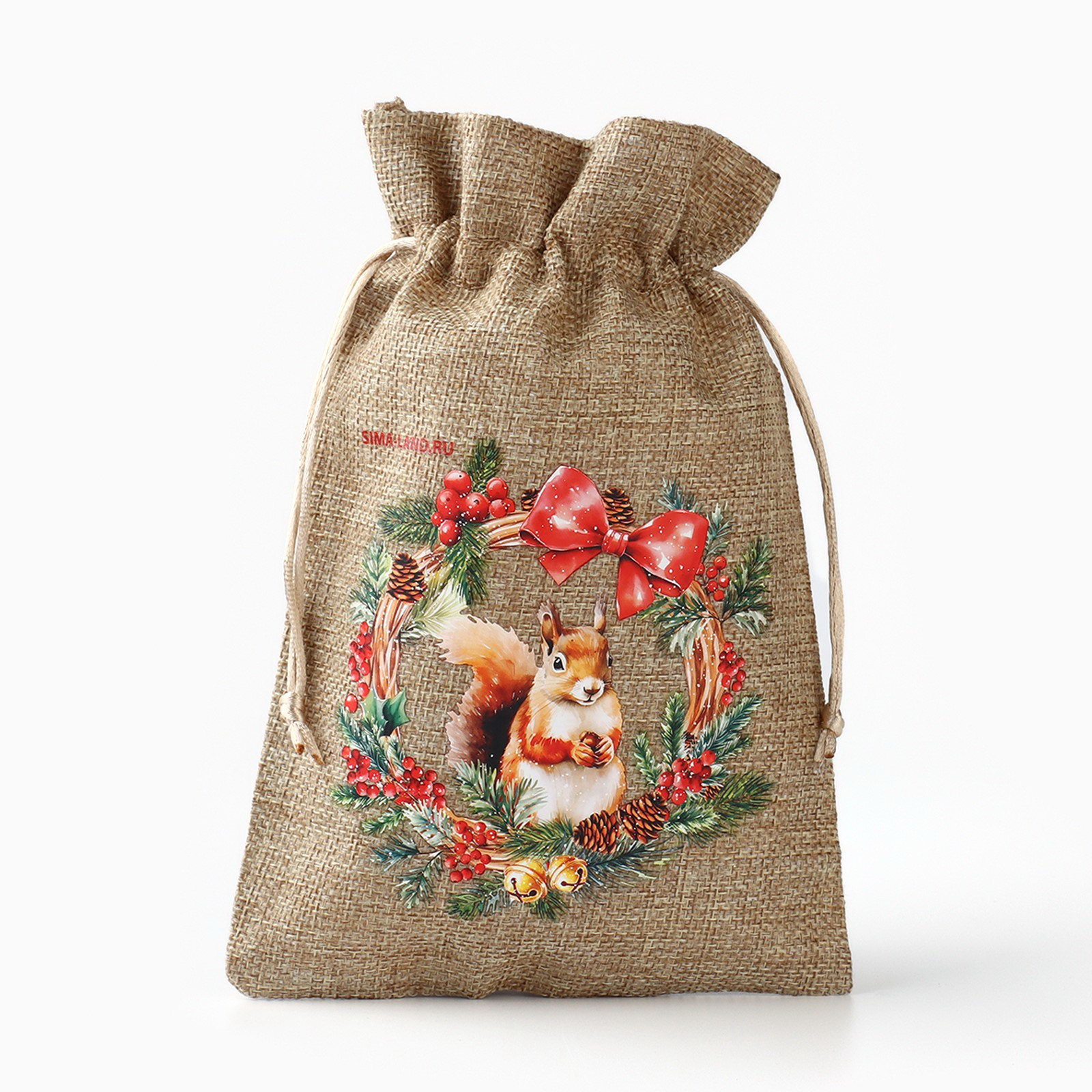 Мешочек подарочный с термонаклейкой "Новогодний венок", 16 x 24 см +/- 1.5 см, 0.2x16x24 см., Дарите Счастье, Китай