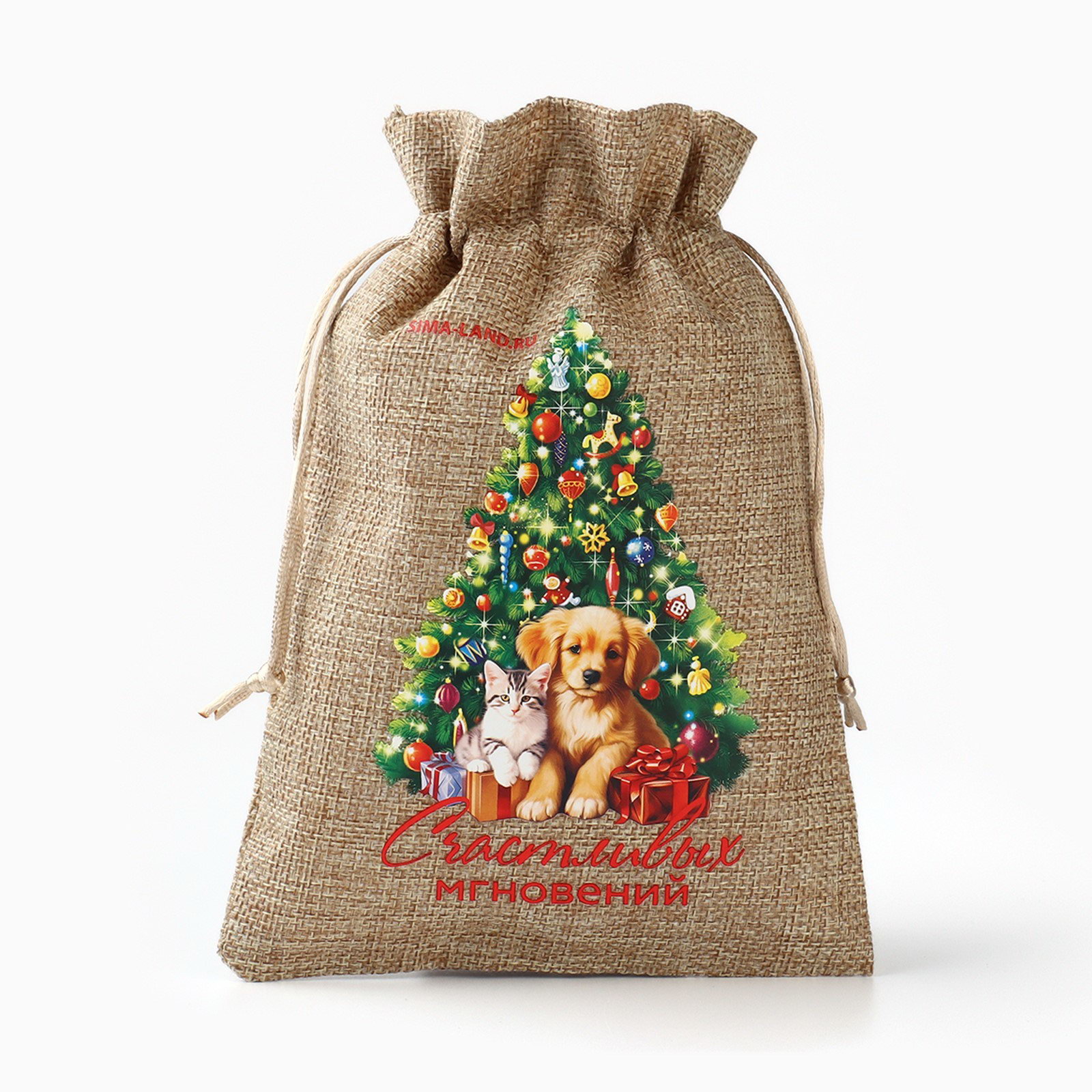 Мешочек новогодний подарочный с термонаклейкой "Счастливых мгновений", 16 x 24 см +/- 1.5 см, 0.2x16x24 см., Дарите Счастье, Китай