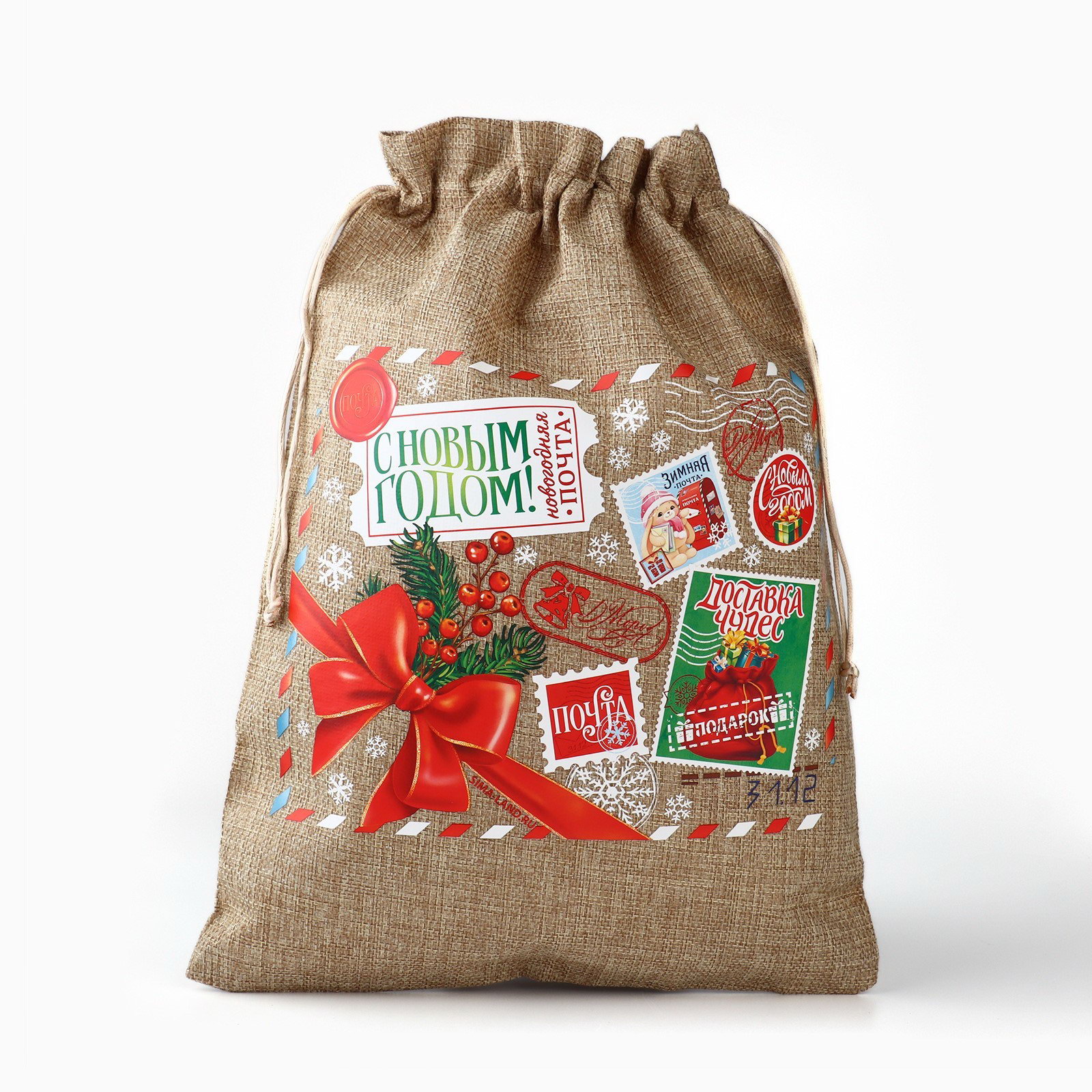 Мешочек подарочный с термонаклейкой "Новогодняя почта", 30 x 40 см +/- 1.5 см, 40x30x0.1 см., Дарите Счастье, Китай