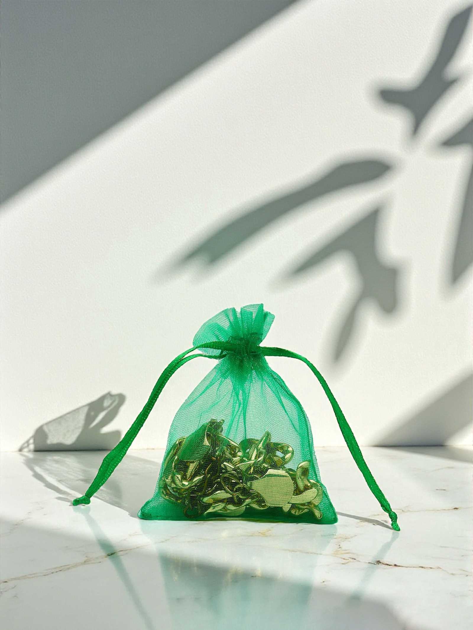 Мешочки подарочные, набор 100 шт. 7x9 см, тёмно-зелёный, 0.1x7x9 см., Китай