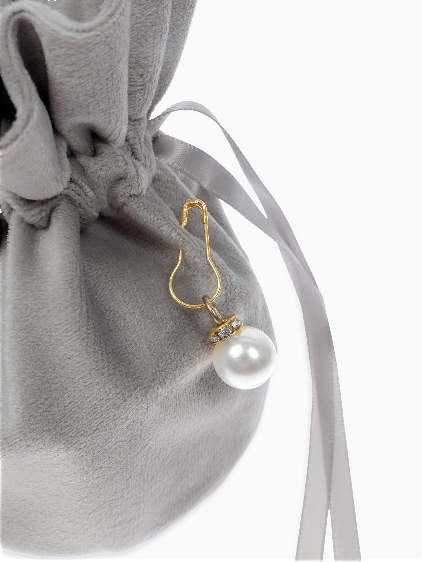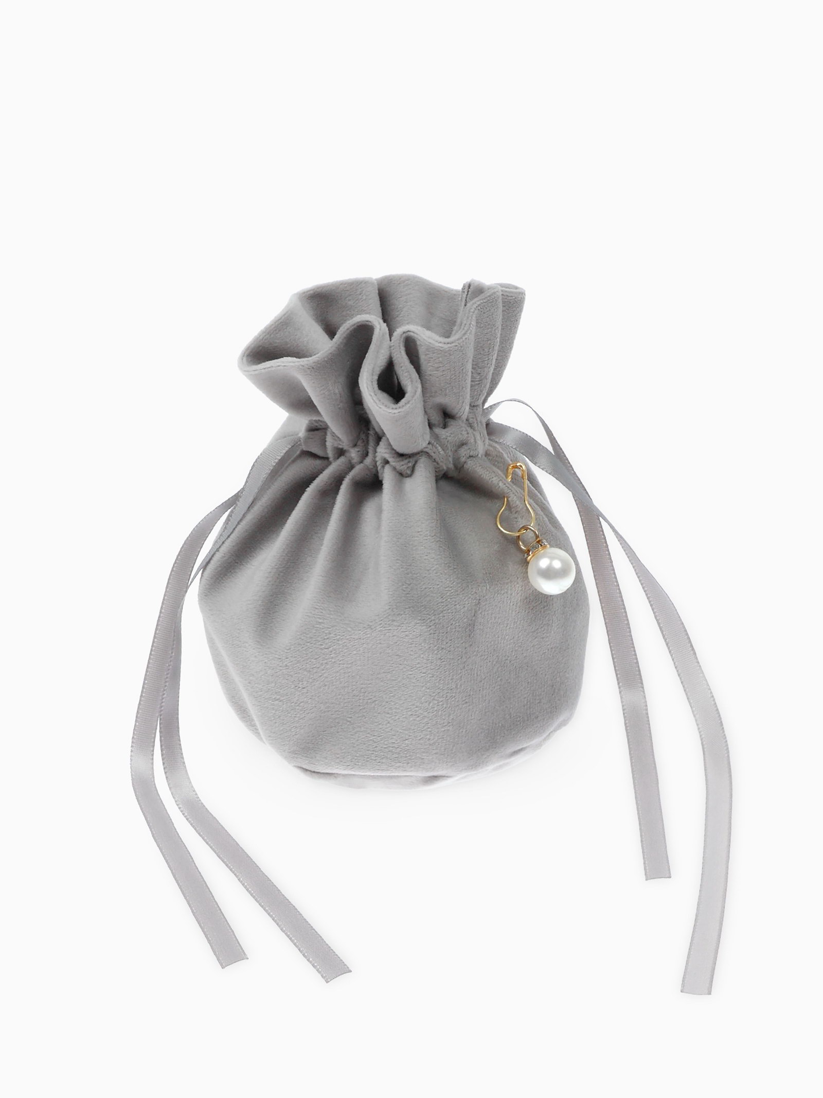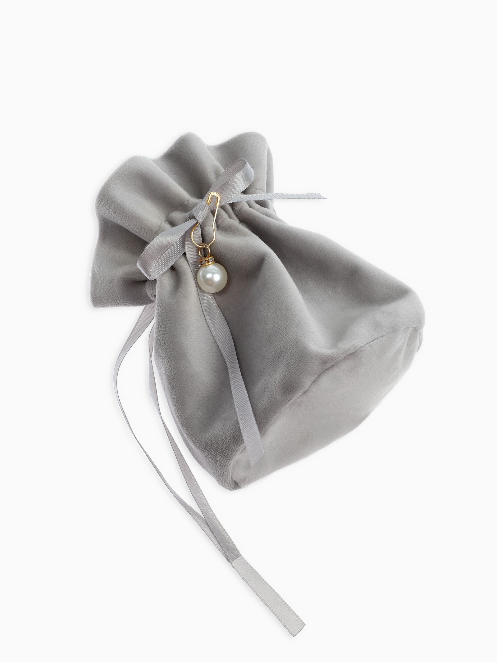 Мешочек подарочный с бусинойй, 13x9 см, бархатный, серый, 9x0.5x13 см., Китай