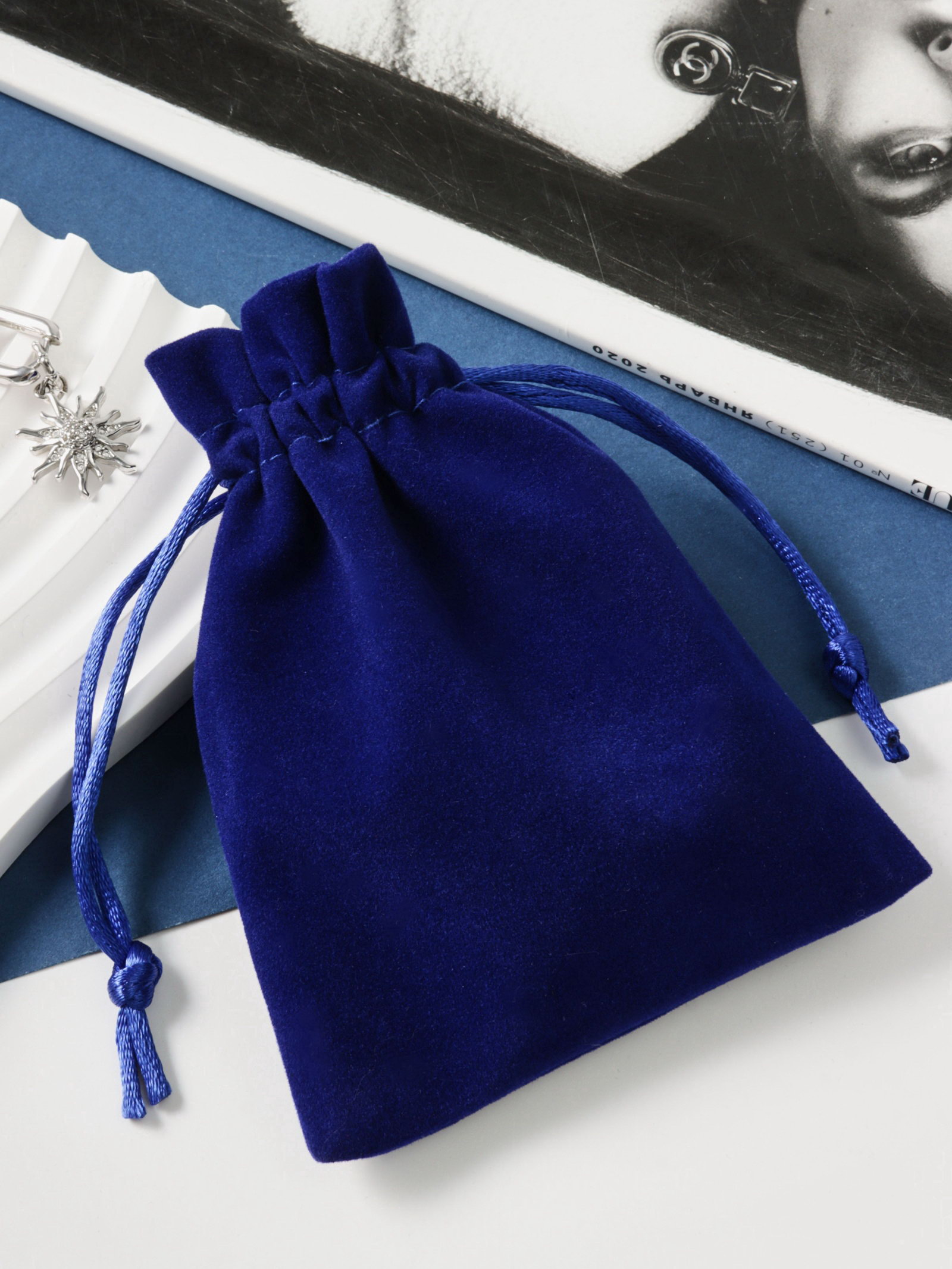 Набор бархатных подарочных мешочков 50 шт. "Классика", 9*12, цвет синий, 12x9x0.1 см., Китай