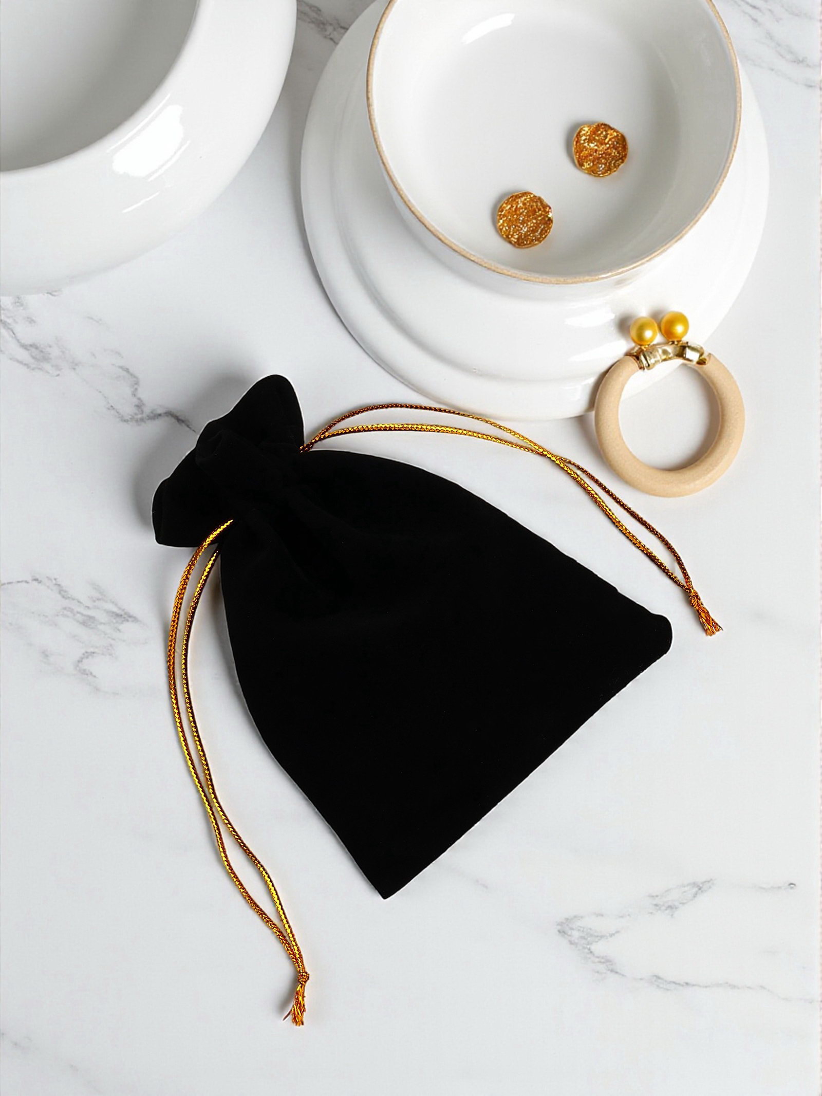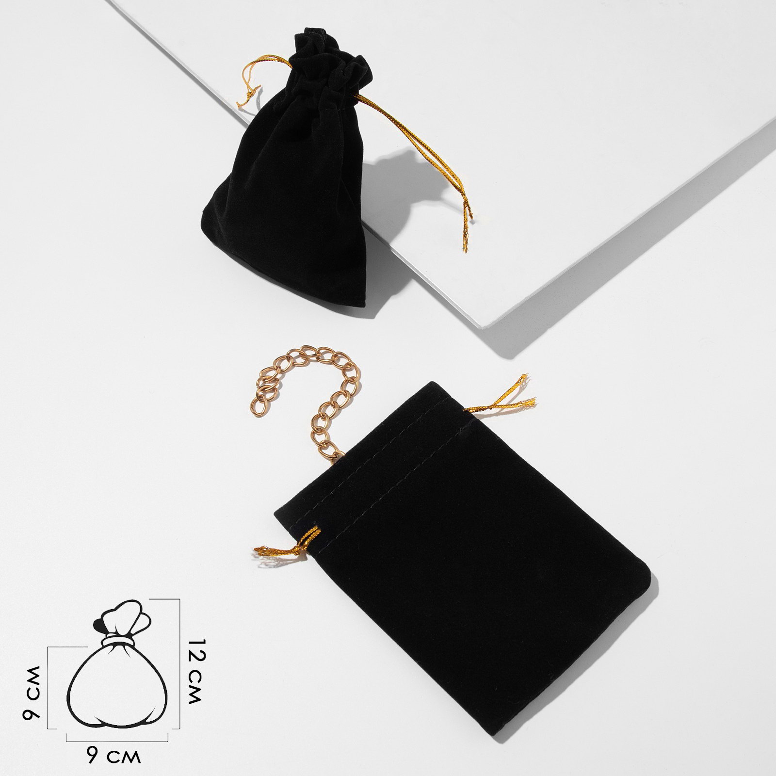 Набор мешочков бархатных 50 шт. 9x12, чёрный с золотым шнурком, 0.2x9x12 см., Китай