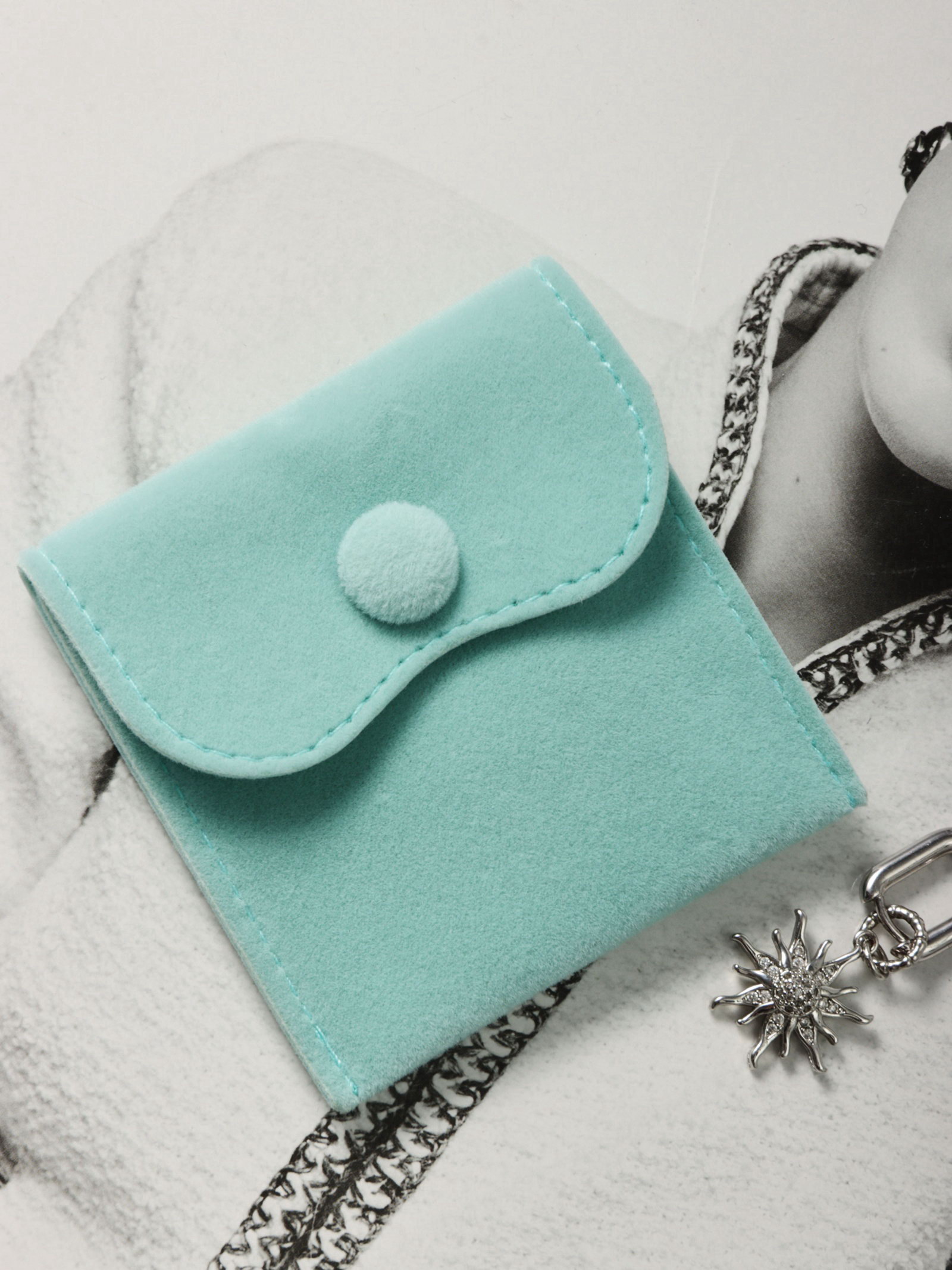 Набор конвертиков для украшений, 10 шт. бархат, 7x7 см, бирюзовый, 0.4x7x7 см., Китай