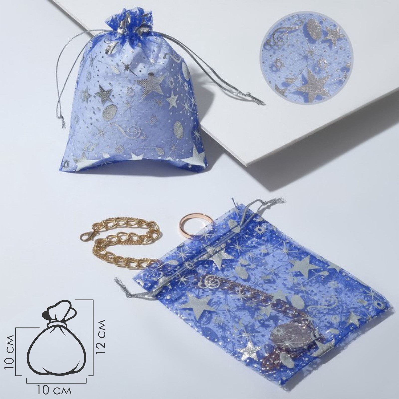 Набор мешочков подарочных 100 шт. "Звёздная музыка", 10x12 см, синий с серебром, 12x10x0.1 см., Китай