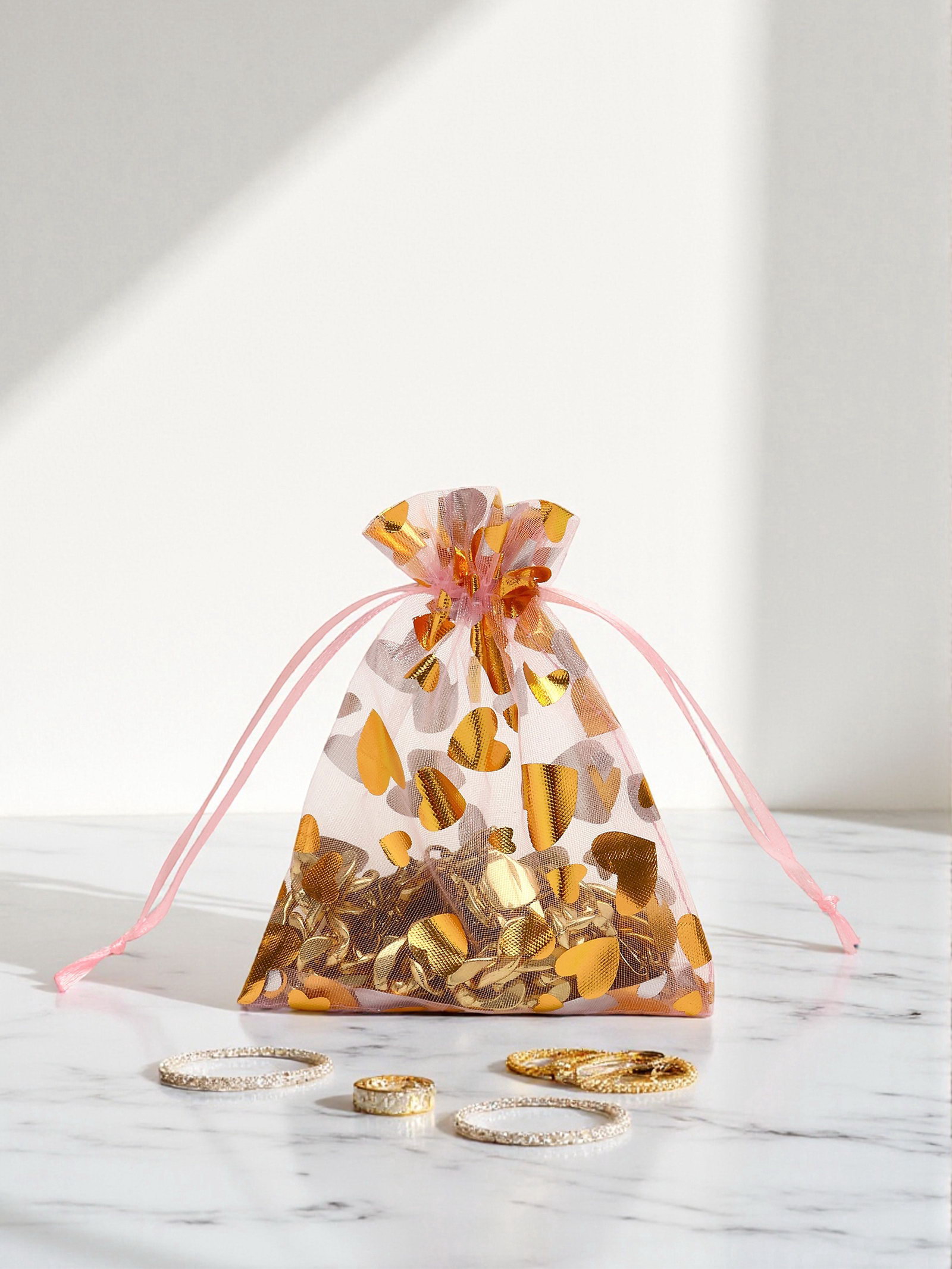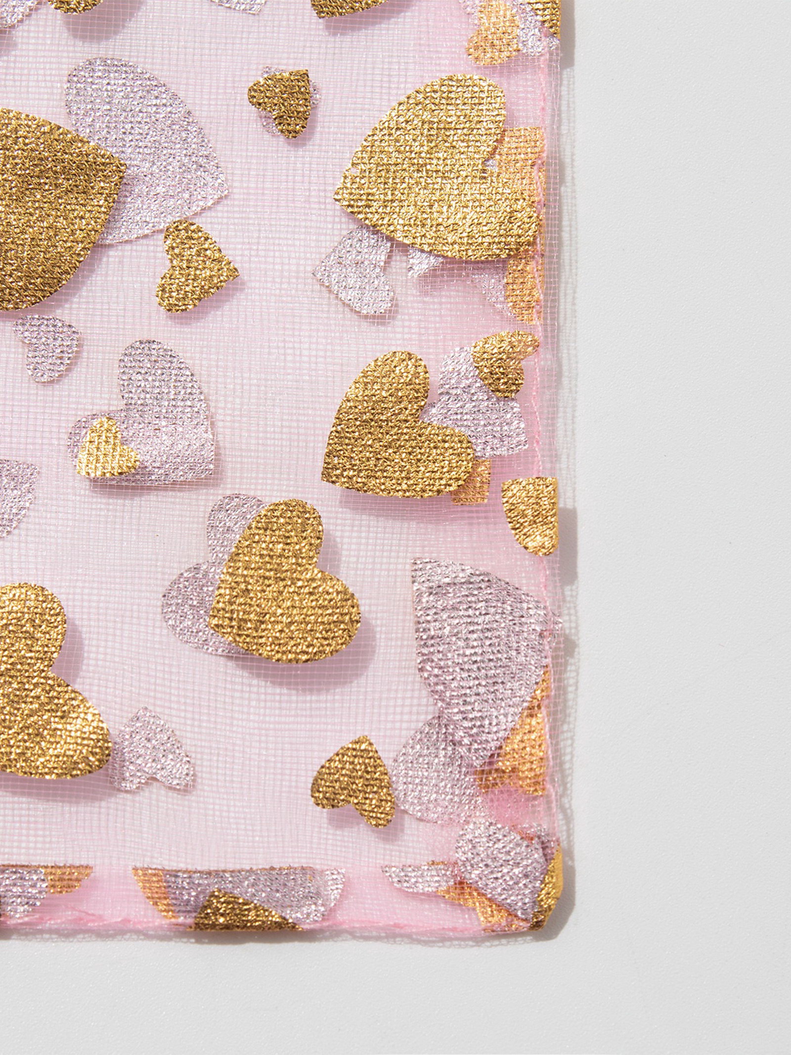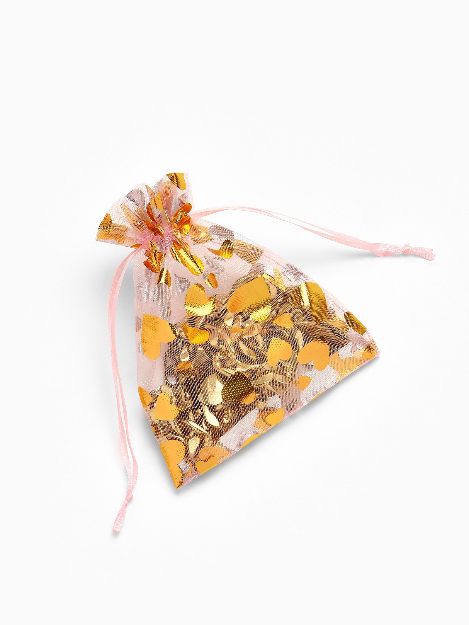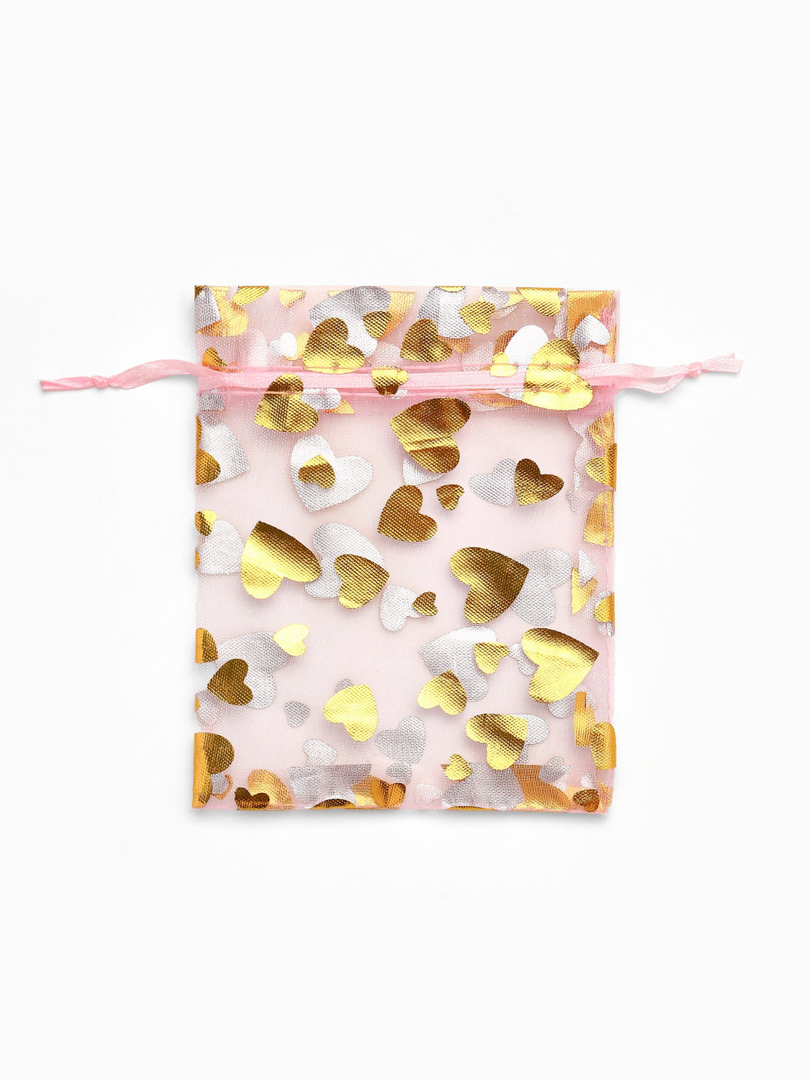 Набор мешочков подарочных 100 шт. "Сердечки", 10x12 см, розовый с золотом, 12x10x0.1 см., Китай