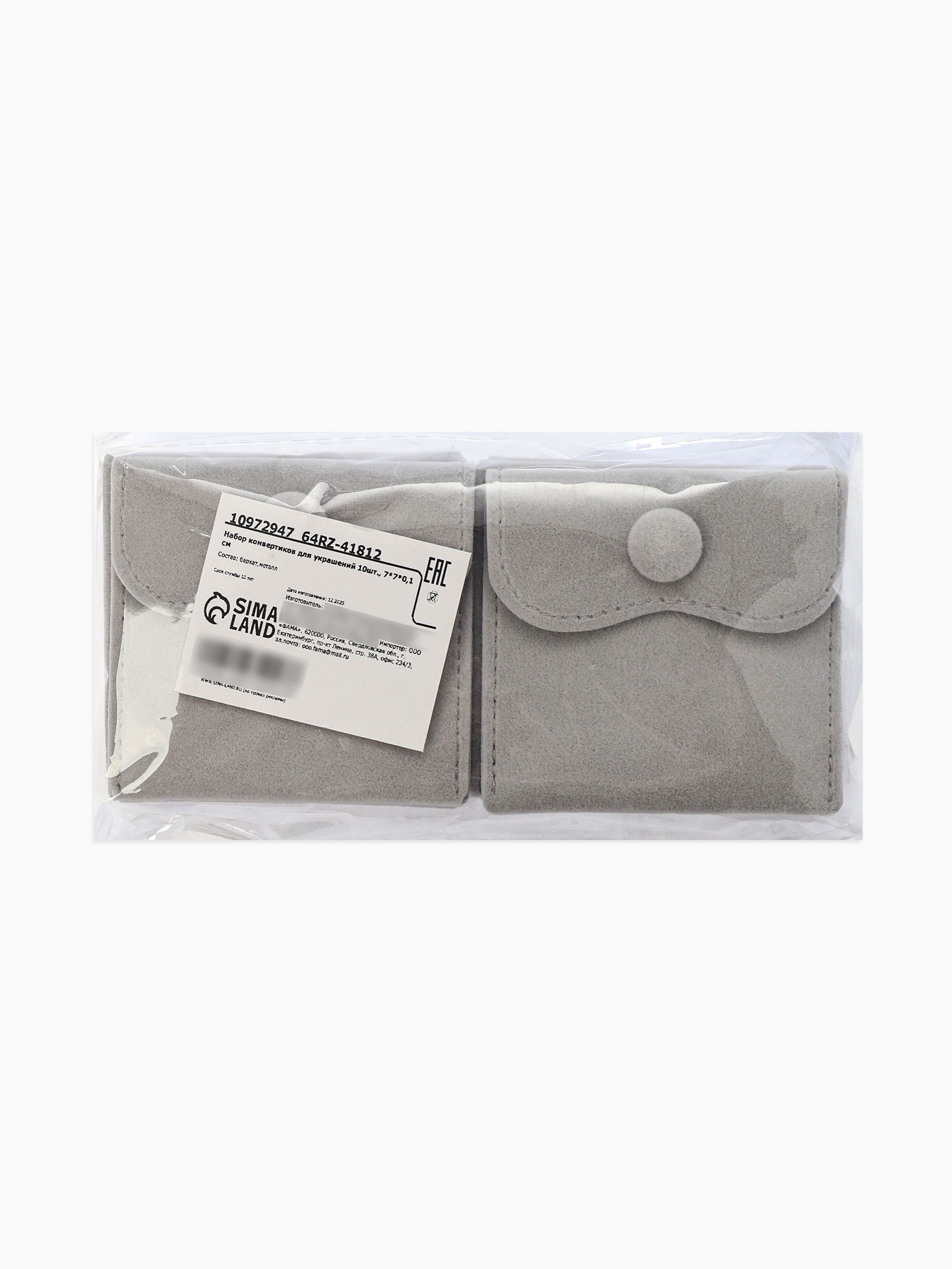 Набор конвертиков для украшений 10 шт., 7x7 см, серый, 0.4x7x7 см., Китай