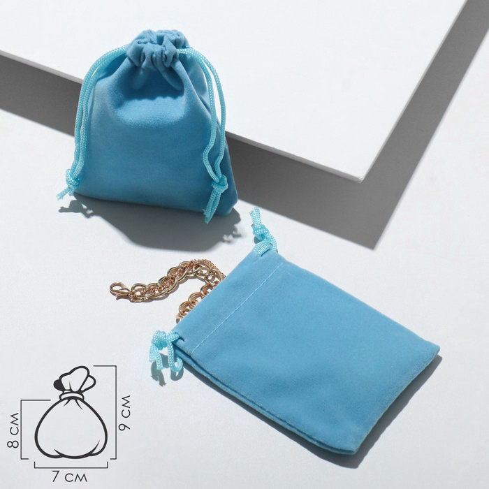Набор бархатных подарочных мешочков 50 шт. 7x9 см, голубой, 9x7x0.1 см., Китай