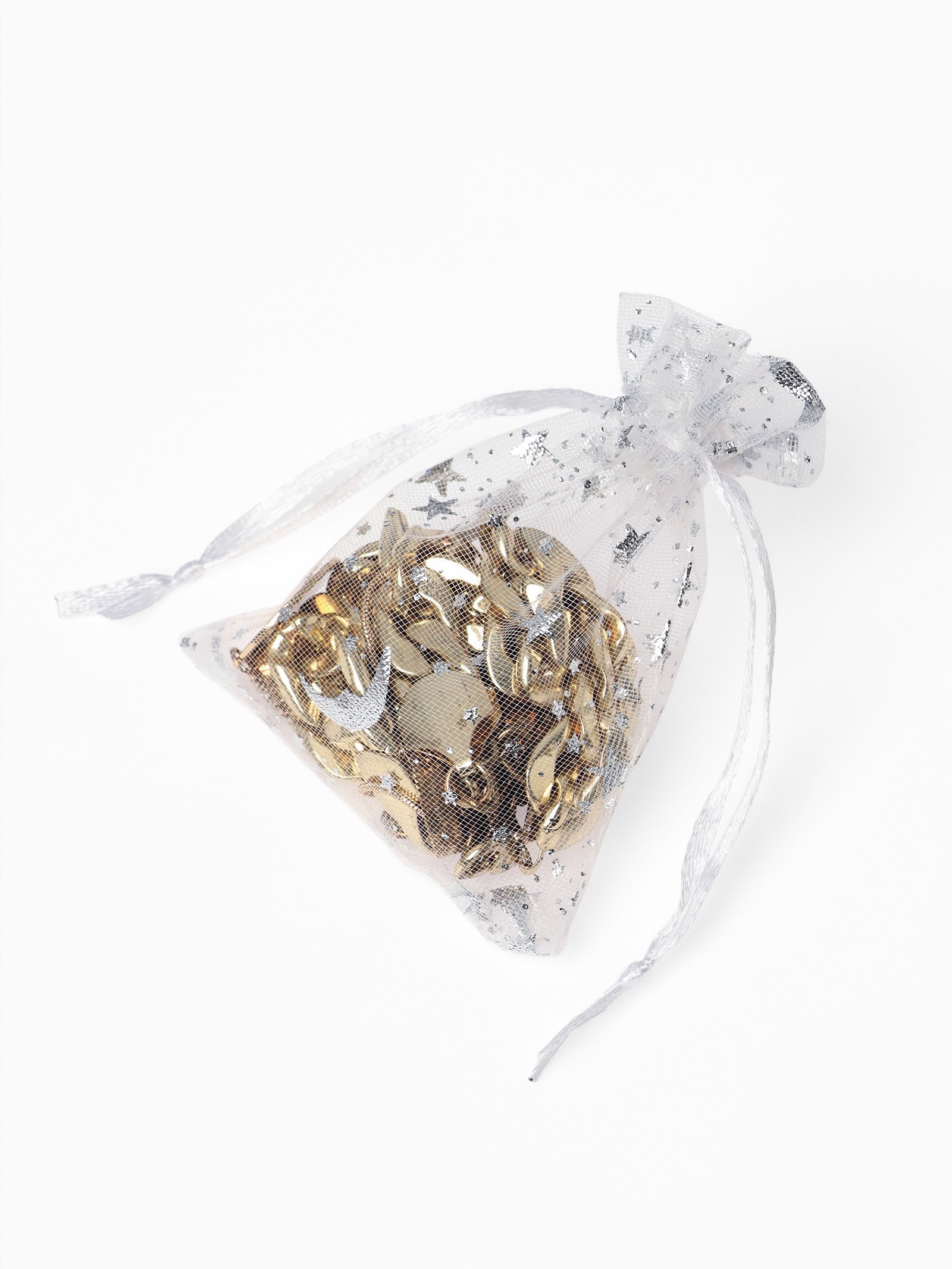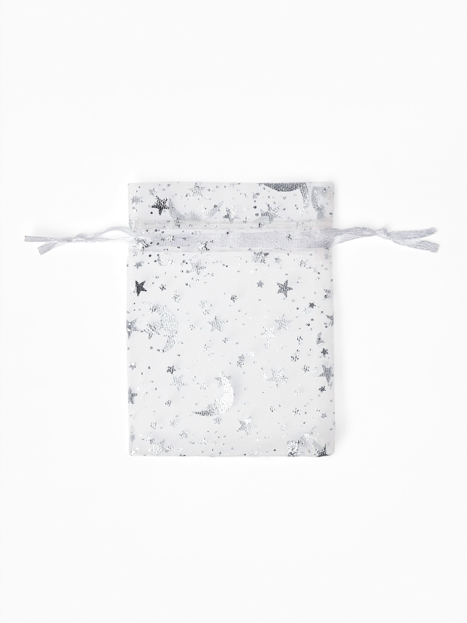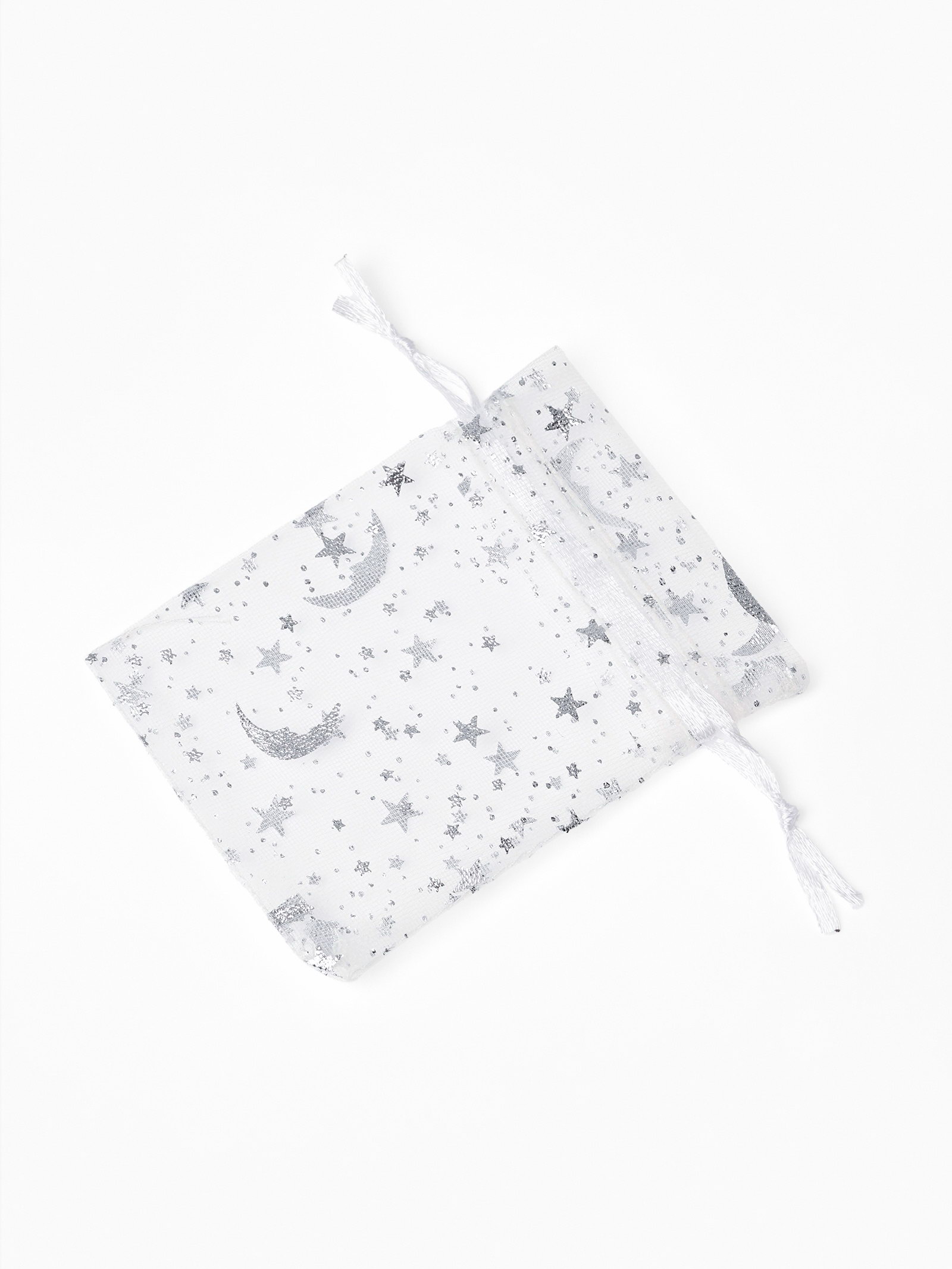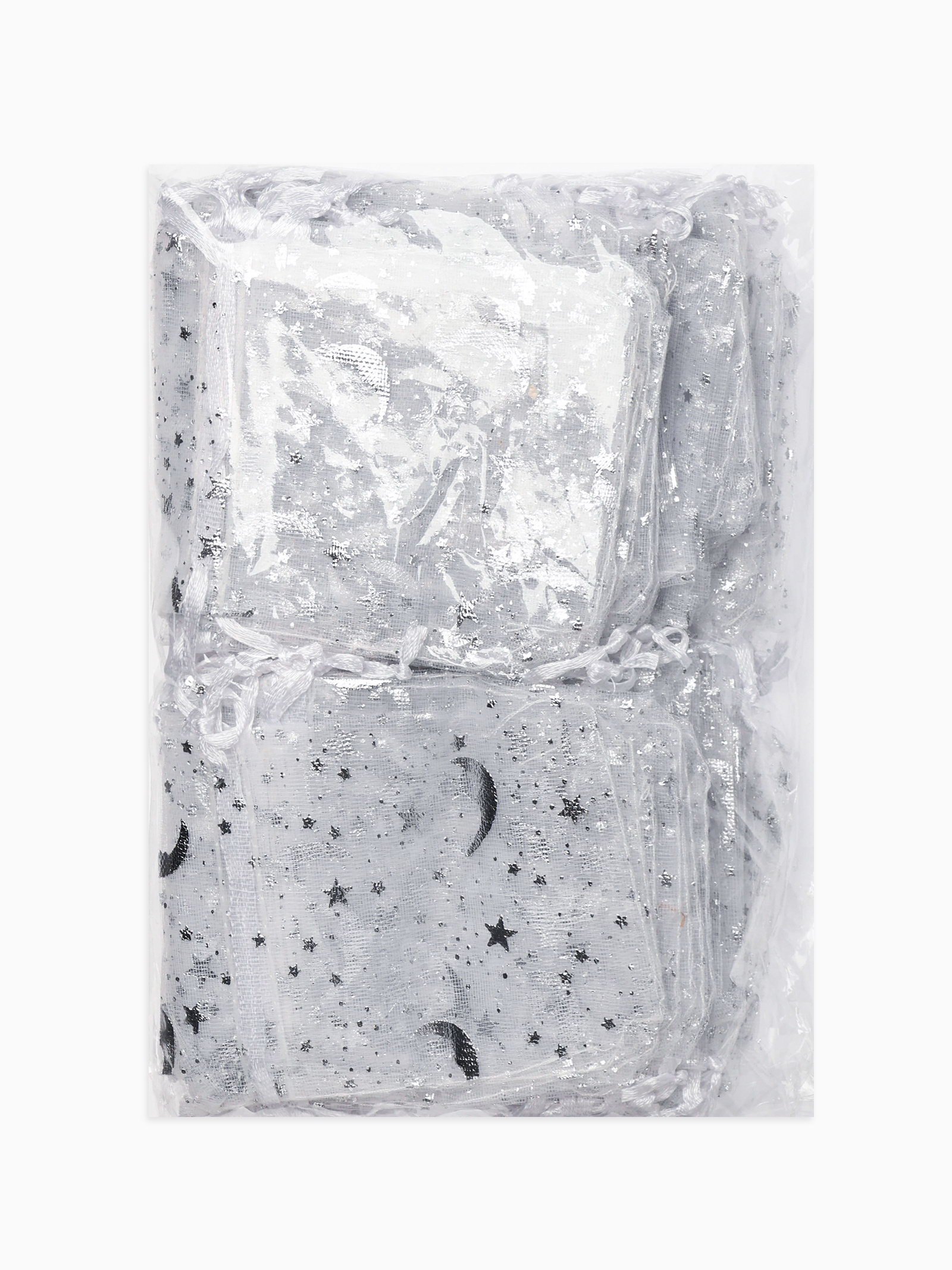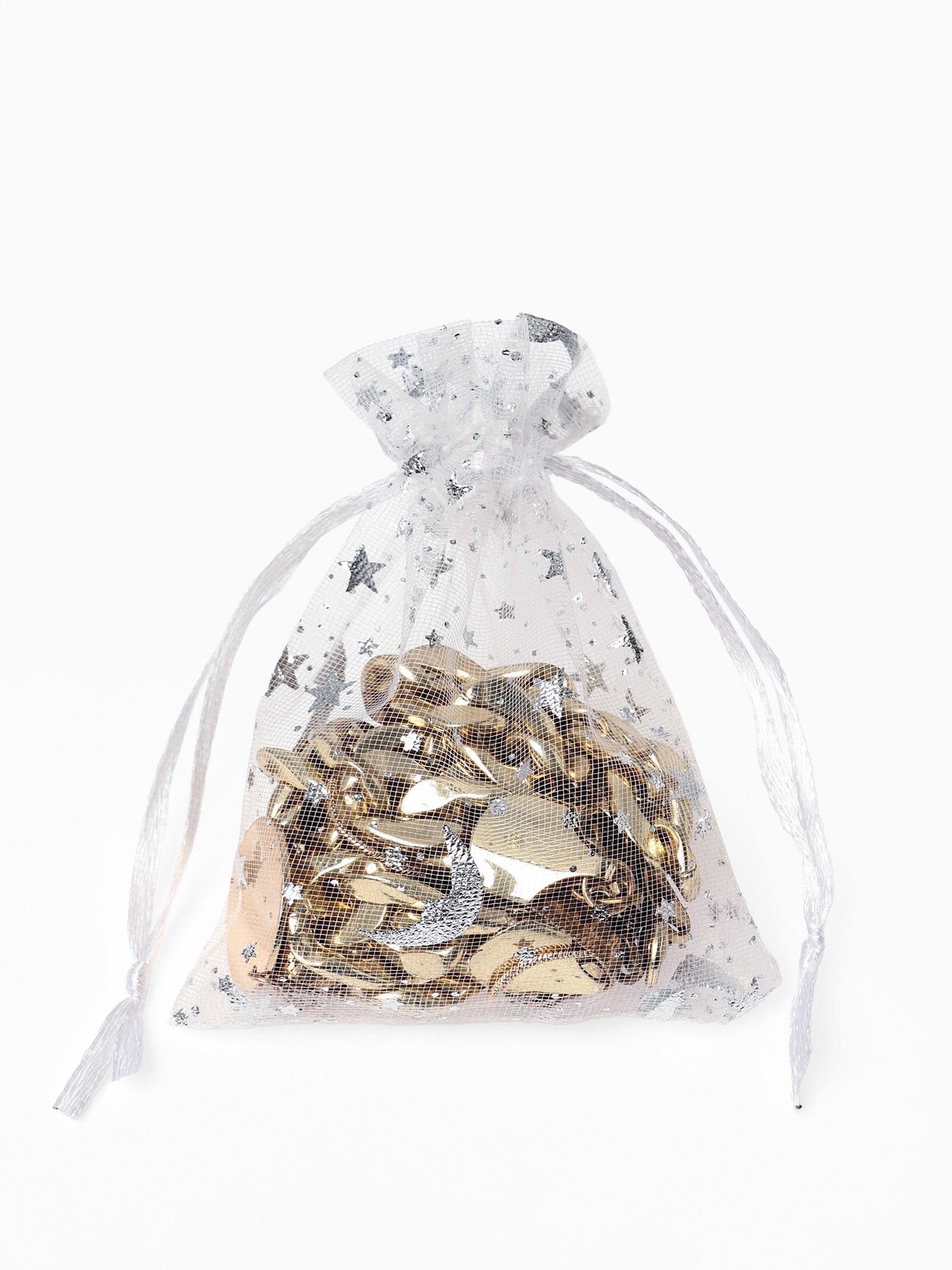 Набор подарочных мешочков 100 шт. "Звёзды с месяцем", 7x9 см, белый с серебром, 0.1x7x9 см., Китай