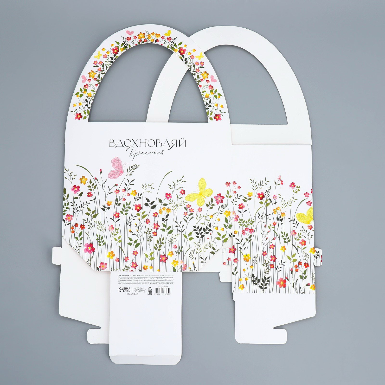 Тематика: Надписи, цифры, буквы, Цветочно-растительная Вид ручки: Бумажная, Вырубная Особенности: Креативный, Фигурный Цвет: Белый, Разноцветный Тематика праздника: 8 Марта, Универсальная тематика Размер упаковки: 36.5 x 44 x 0.1 см. Размер упаковки: 36.5 x 44 x 0.1 см. tnved: 4819400000 Дизайн: С рисунком, надписью Для кого: Для женщины Примерный размер: XL (~ 33см - 45см) Отделка пакета: Без отделки Размер, см: 23 x 11 Допустимый вес вложения, г: 1000 Рисунок: Да Плотность, г/?2: 190 | ||