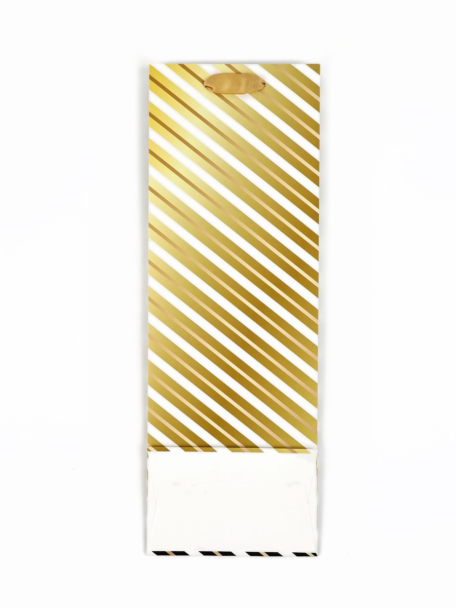 Пакет ламинированный "Золотые полосы", тиснение, глиттер, 12.5 x 8 x 36 см, 8x12.5x36 см., Дарите Счастье, Китай