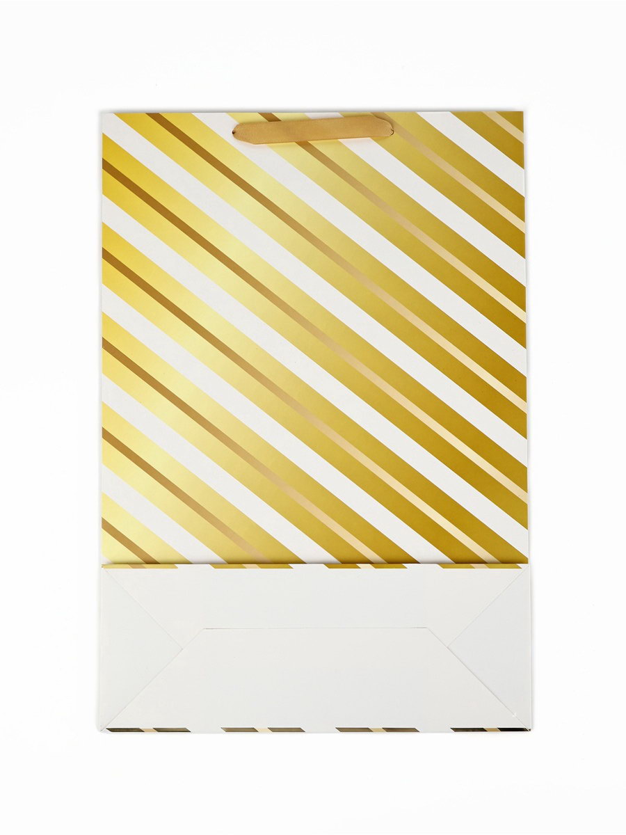 Пакет ламинированный "Золотые полосы", тиснение, глиттер, 26 x 12 x 33.5 см, 12x26x33.5 см., Дарите Счастье, Китай