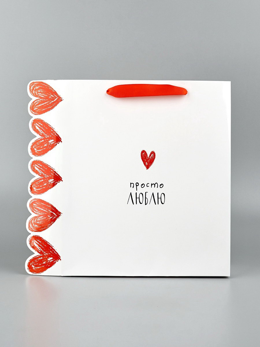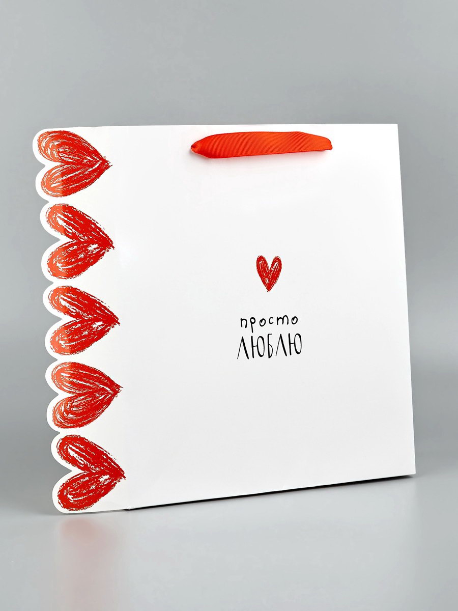 Пакет подарочный ламинированный "Люблю" 26 x 9 x 30 см, 9x26x30 см., Дарите Счастье, Китай