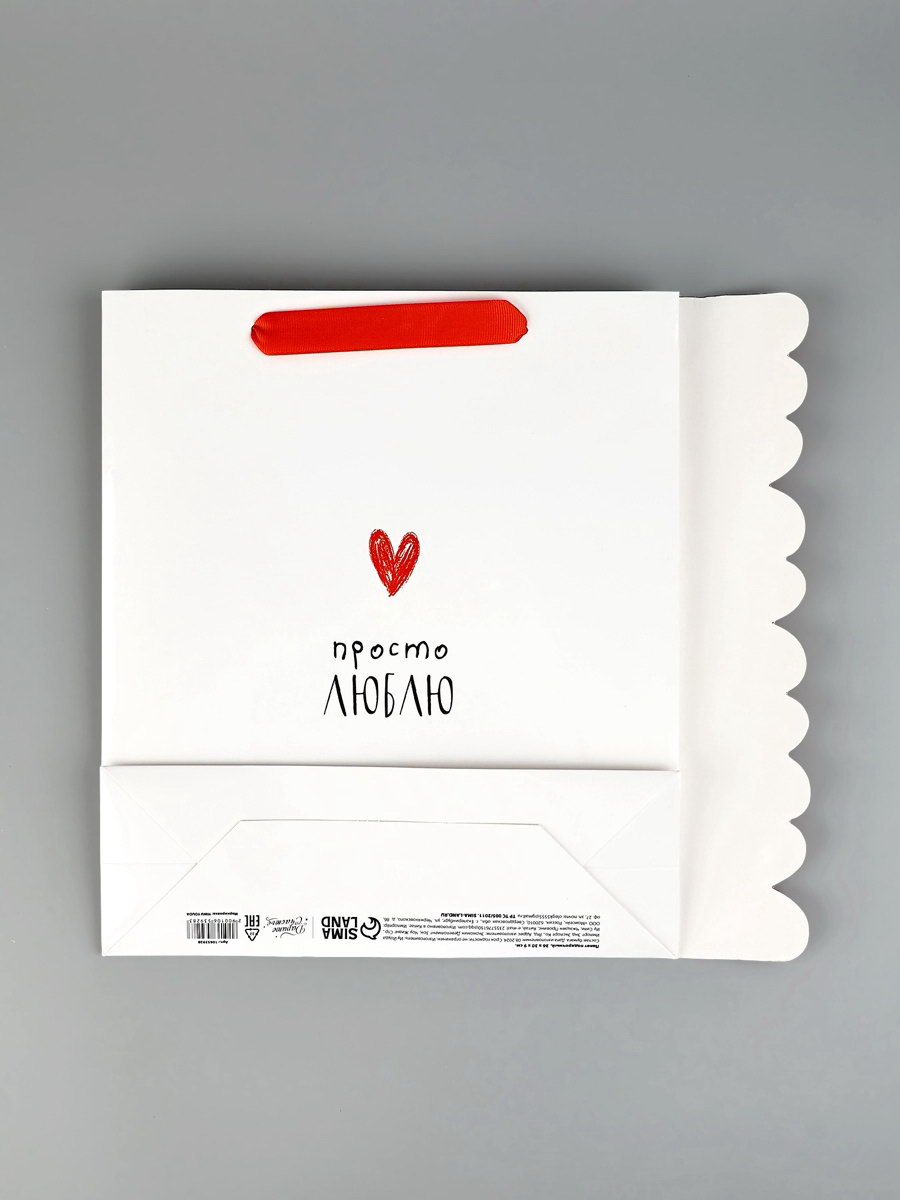 Пакет подарочный ламинированный "Люблю" 26x9x30 см, 9x26x30 см., Дарите Счастье, Китай