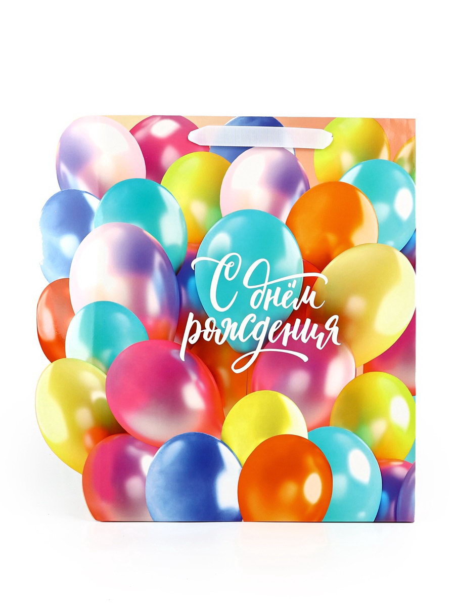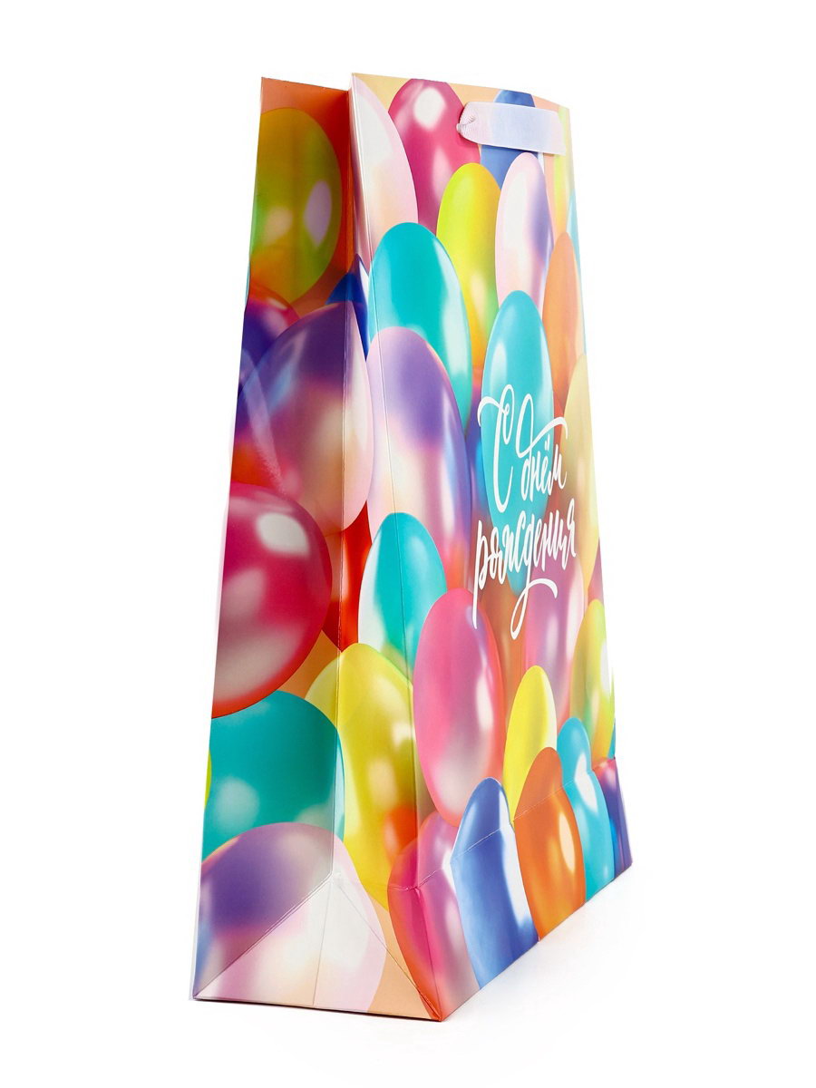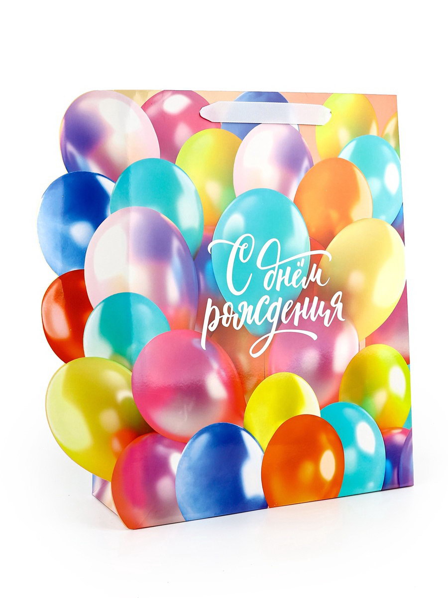 Пакет подарочный ламинированный "С Днём рождения", шары, 31 x 11.5 x 40 см, 11.5x31x40 см., Дарите Счастье, Китай