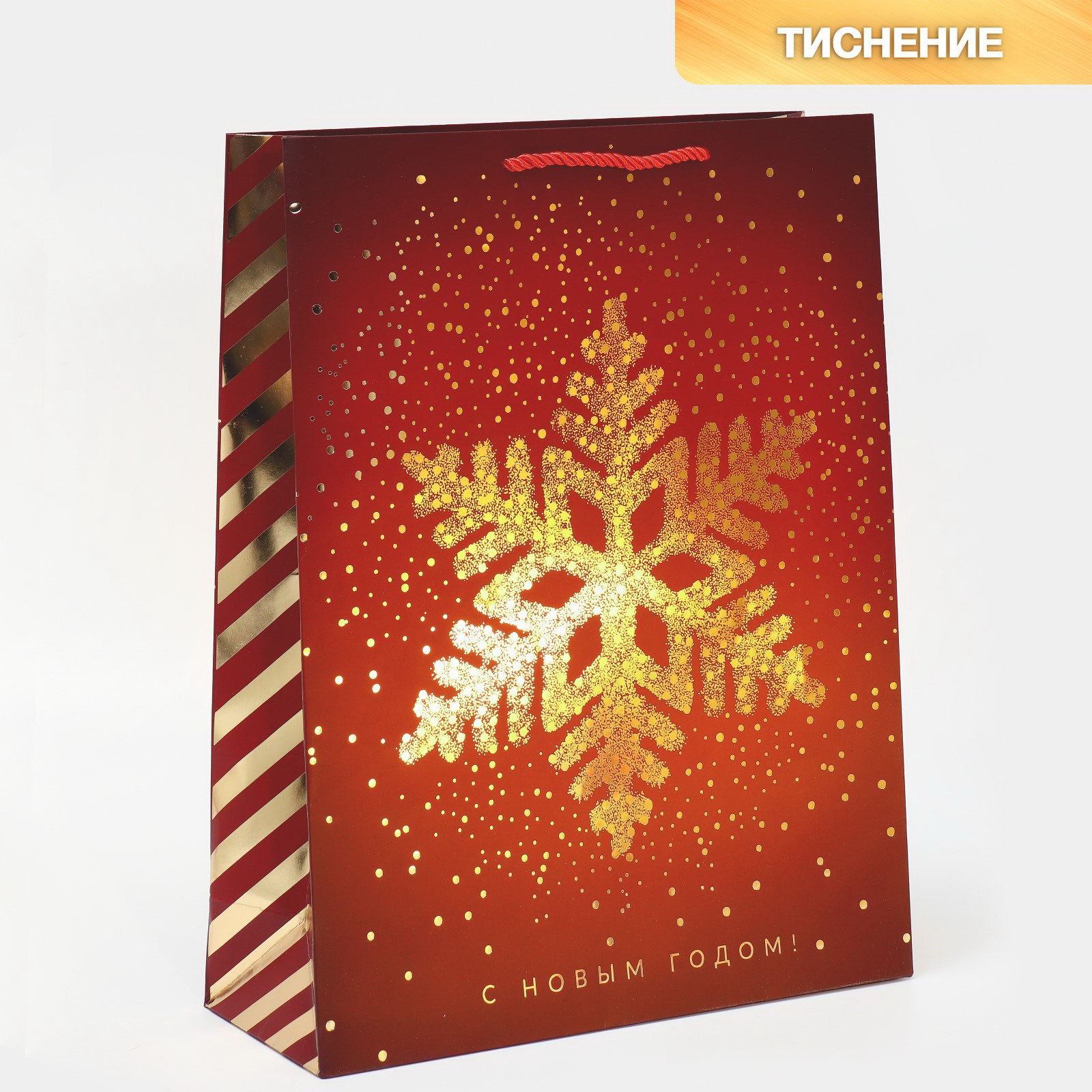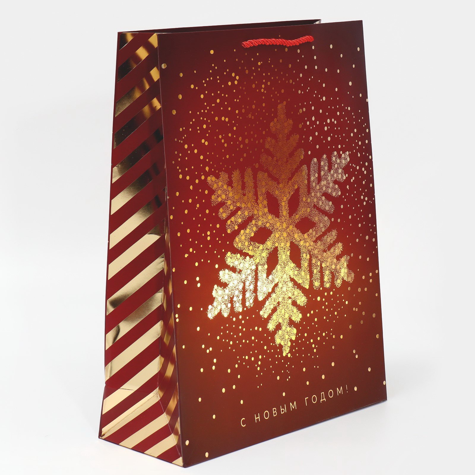 Пакет вертикальный "Золотая снежинка", 31 x 40 x 11 см, 31x11x40 см., Дарите Счастье, Китай