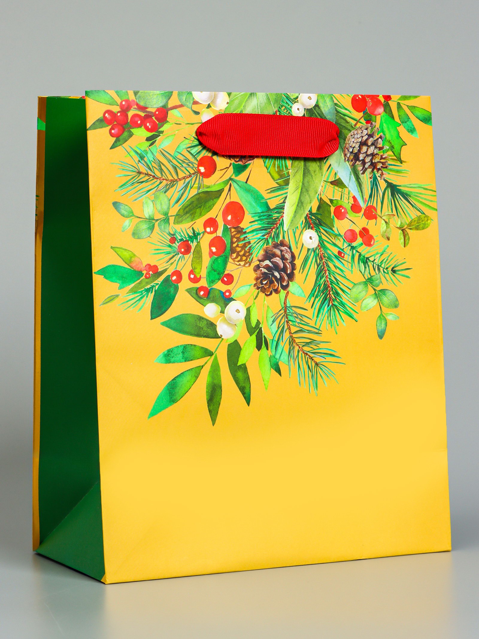 Пакет подарочный с тиснением, "Новогодний букет", люкс, 18x22.3x10 см, Китай